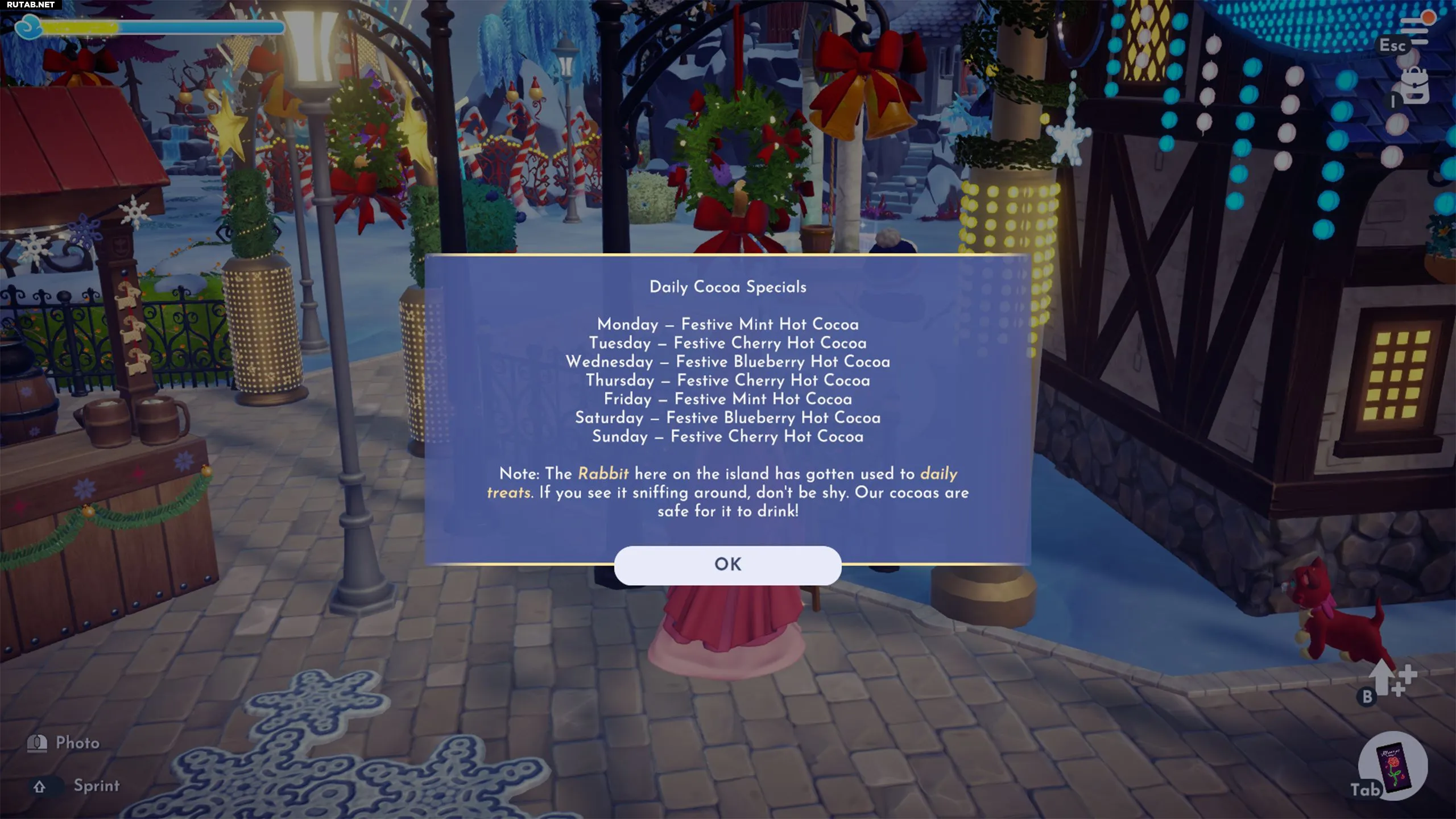 Все ингредиенты можно найти на острове Зимнего плавучего фестиваля, за исключением молока. При желании можно использовать молоко, которое уже есть в вашем хранилище, собранное ранее в долине. Однако Праздничный какао-боб нельзя заменить обычным какао-бобом из Disney Dreamlight Valley.