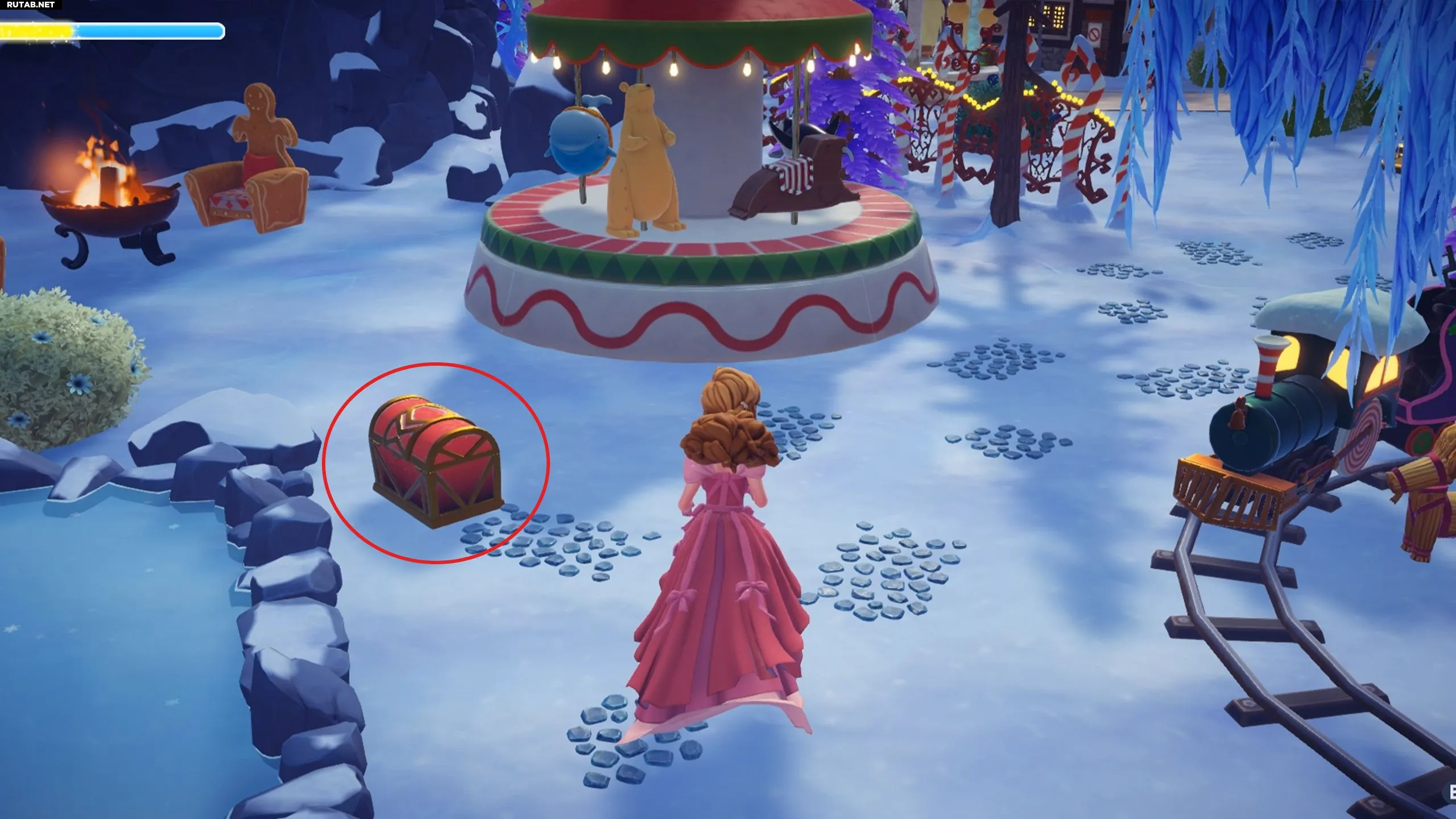 | Праздничное вишнёвое горячее какао | Откройте сундук возле карусели и железной дороги. |