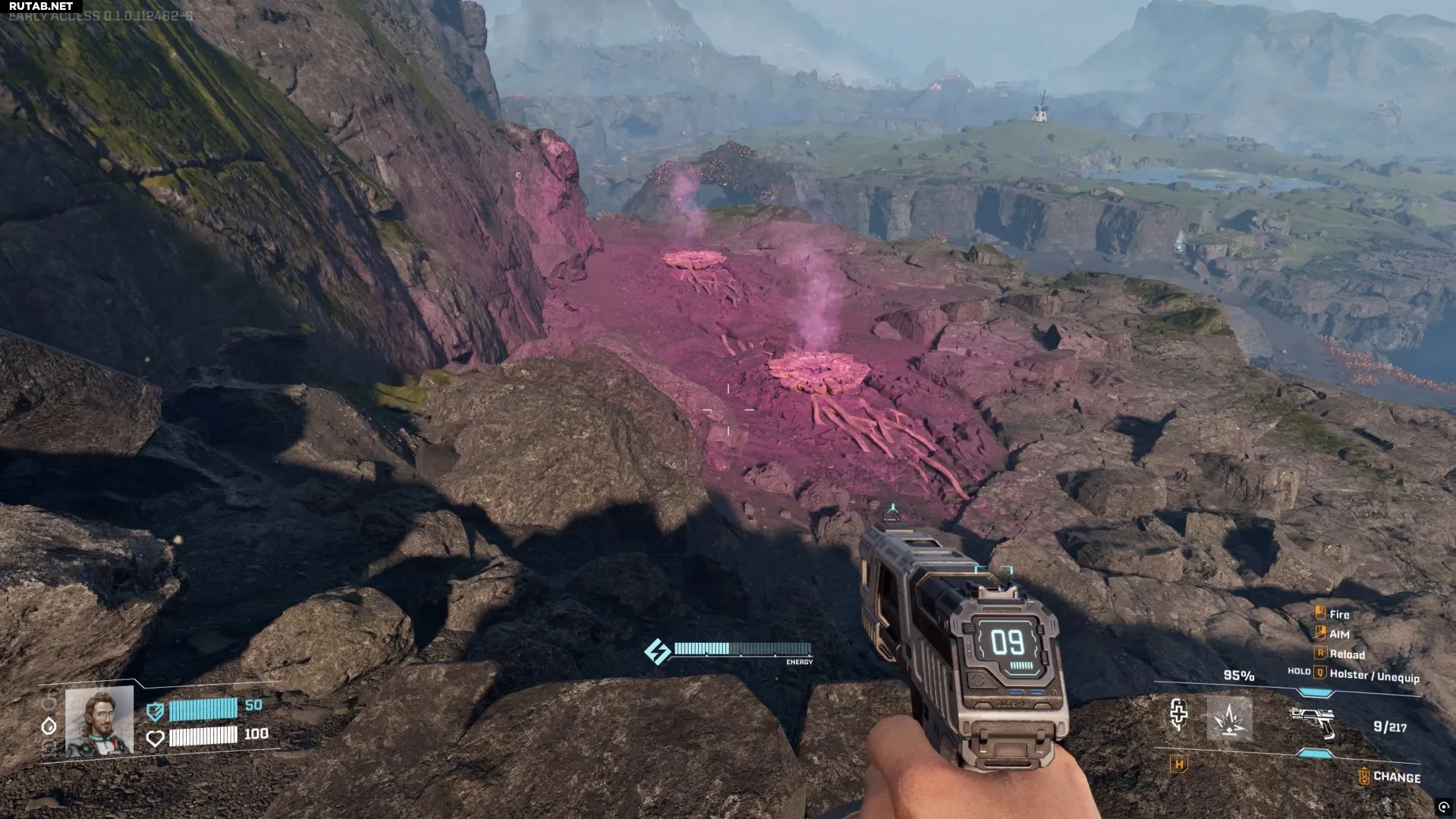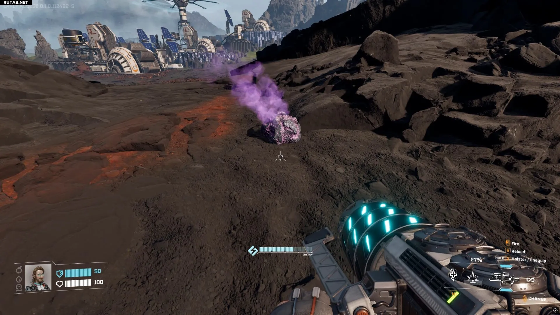Ещё один способ — искать небольшие камни, похожие на миниатюрные метеориты, разбросанные по карте. Некоторые из них белые, серебристые или бронзовые, но если повезёт, вы найдёте розовые/фиолетовые, источающие газ. Используйте на них сборщик, чтобы получить немного гелия-3.