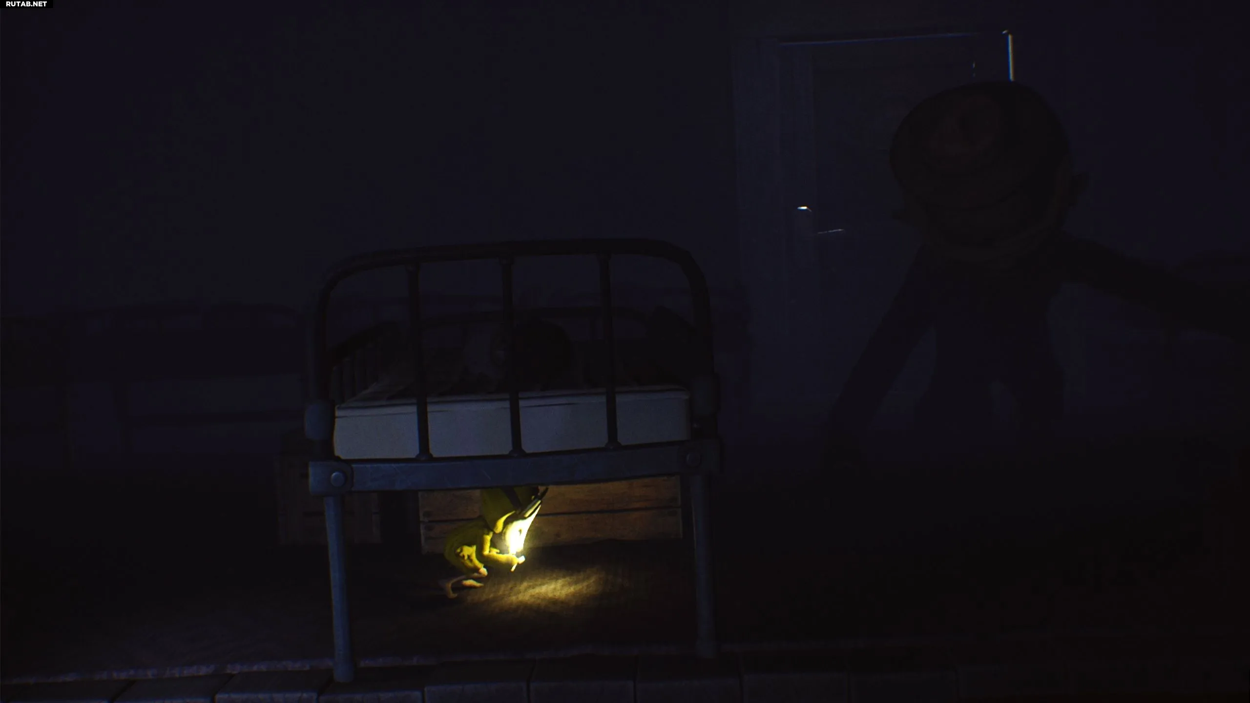 Продолжайте движение направо, чтобы добраться до детской, и спрячьтесь под кроватью. Вскоре появится Смотритель и начнёт ходить по комнате.