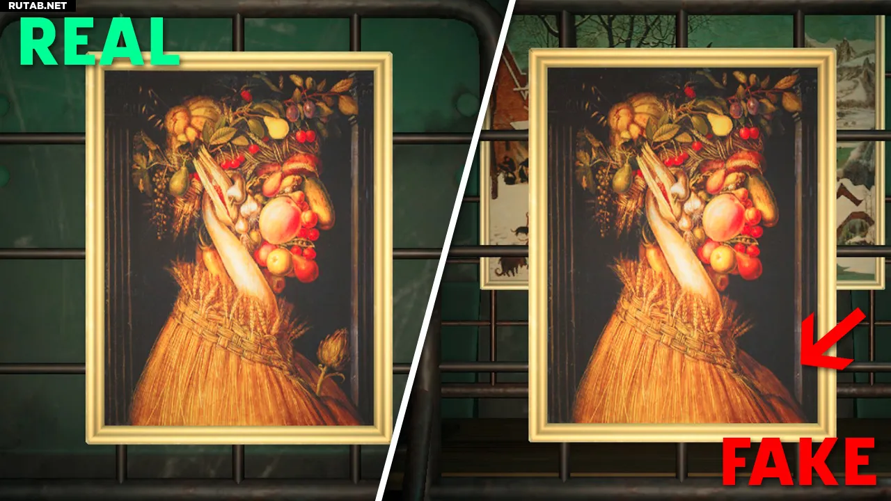 Ниже представлены изображения подлинных и поддельных произведений искусства, которые продаёт Весёлый Редд. Картины расположены в алфавитном порядке, за ними следуют статуи и артефакты. Мы также указали те работы, для которых не существует поддельных версий. Полный список всех произведений и текстовое описание подделок приведены в таблице в конце статьи.