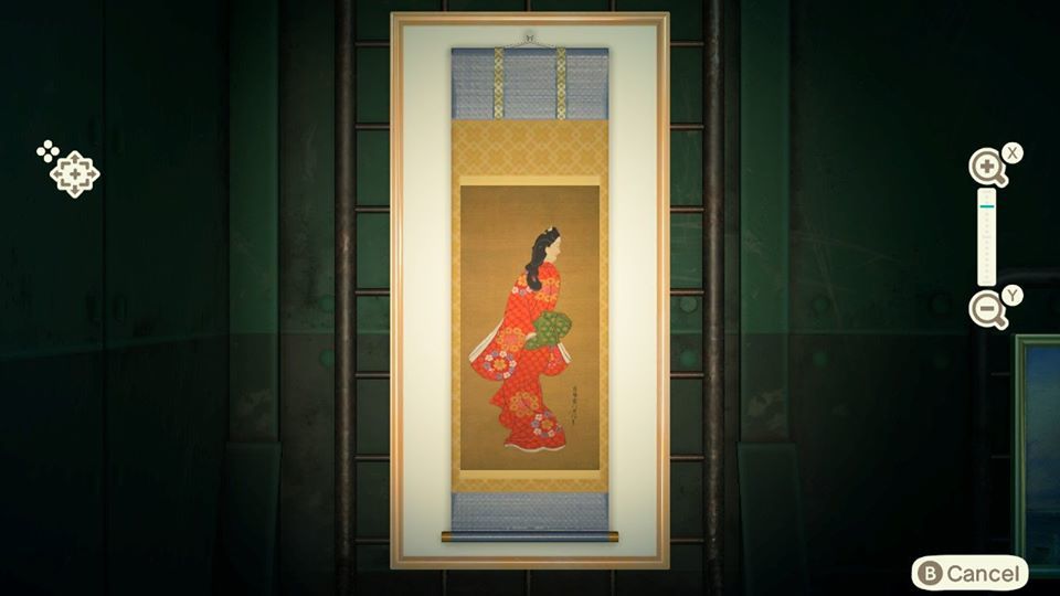 | Изящная картина | «Красавица, оглядывающаяся назад» Хисикавы Моронобу | Фигура должна занимать лишь две трети высоты полотна. На подделке она значительно выше. |