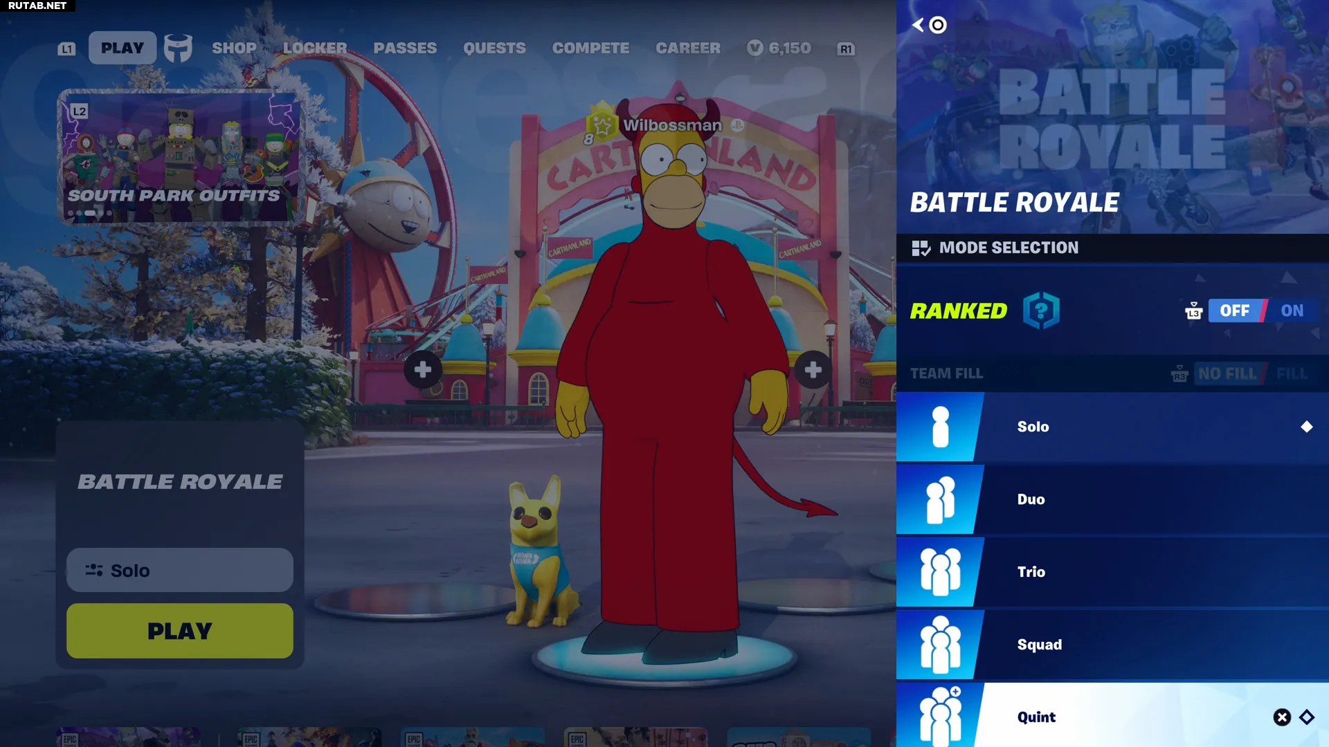 В честь появления в магазине предметов обликов Стэна, Кайла, Картмана, Кенни и Баттерса, теперь можно собрать всю банду, зайдя в новый режим «Квинтс» на 5 человек и увеличив размер своего отряда. Хотя изначально этот режим задуман только для события-кроссовера, ведущий разработчик Fortnite намекнул, что он может стать постоянным, если окажется успешным.