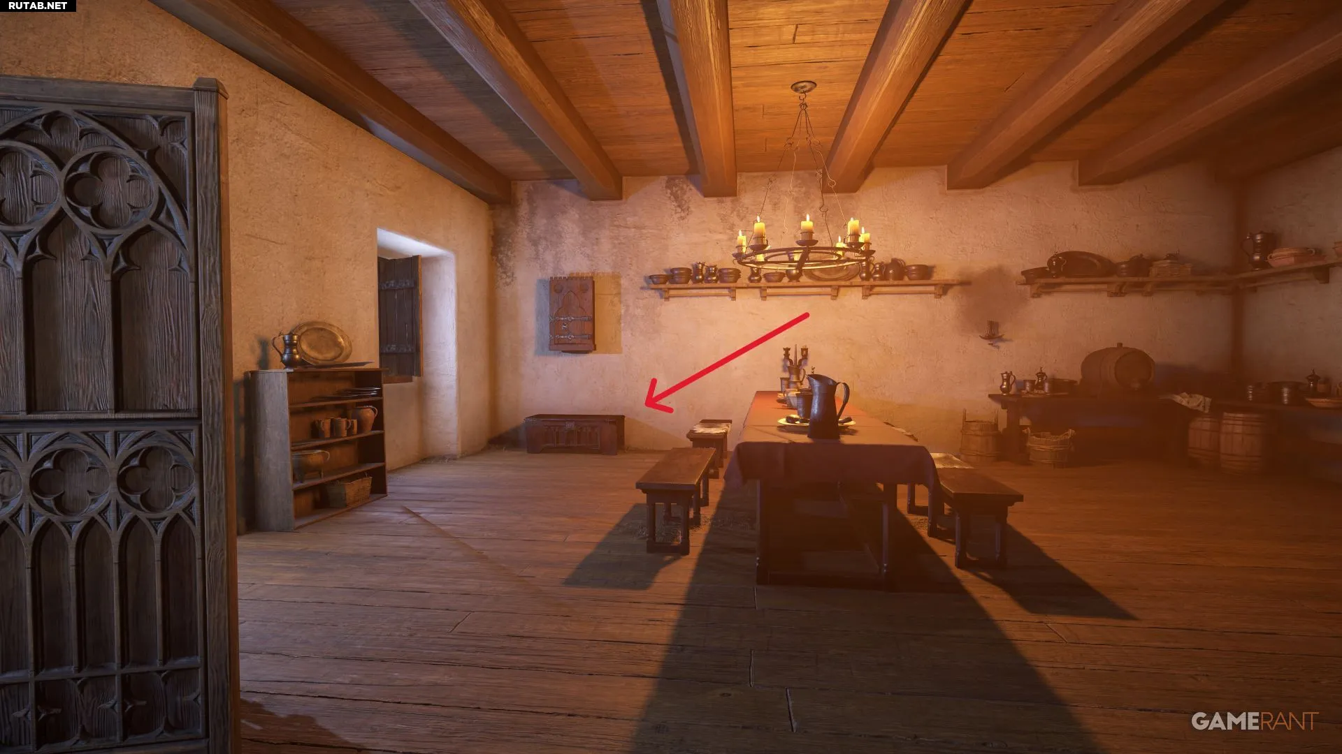 Войдя в комнату, ищите сундук в юго-западном углу, под деревянной полкой. На нём установлен средний по сложности замок.