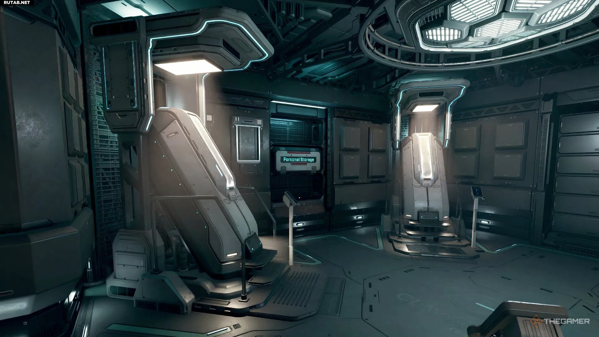 Поверните налево, и вы увидите дверь в серверную комнату, которую можно обыскать. После этого выйдите из комнаты и следуйте по пути прямо, а затем налево.