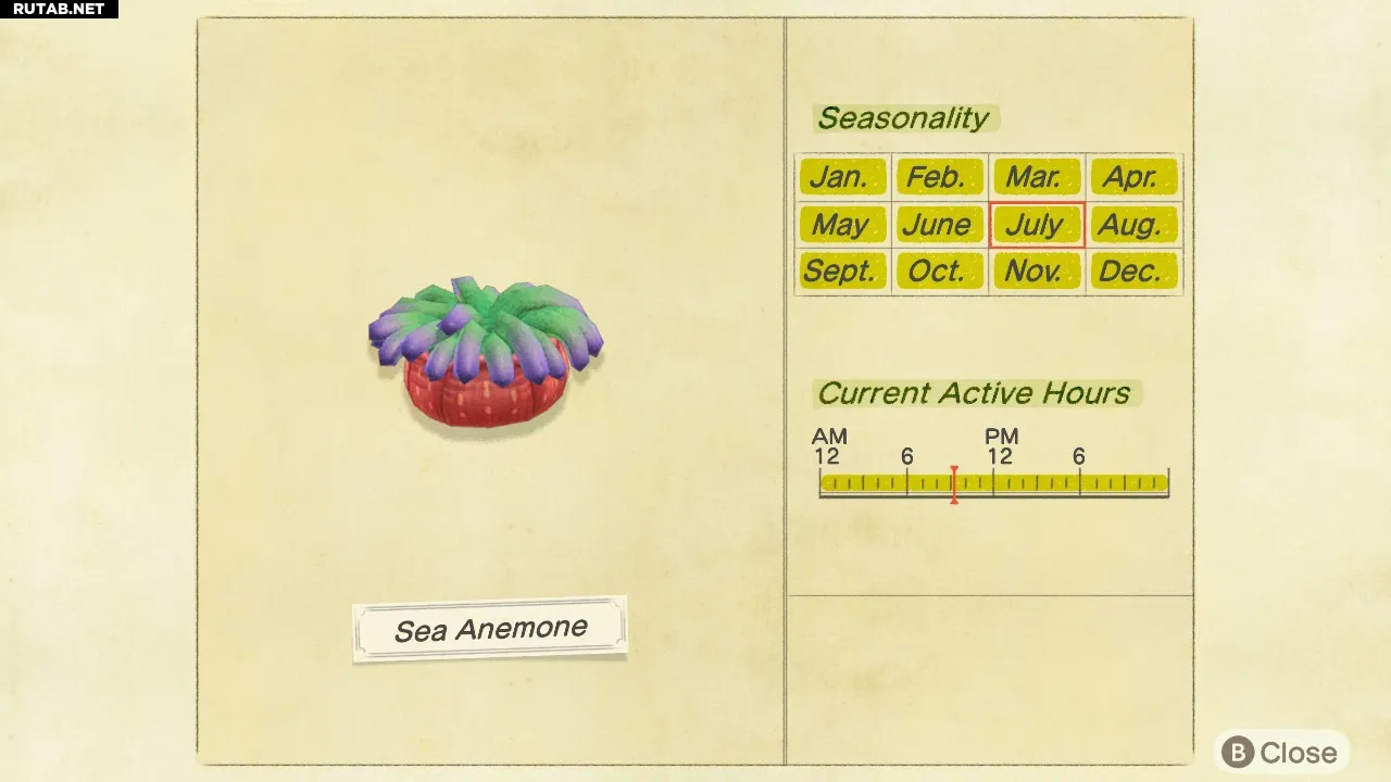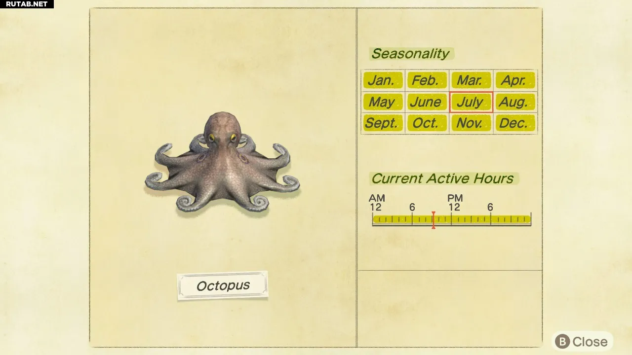 Если ваш остров находится в Южном полушарии, то сезоны для ловли морских существ будут зеркально противоположны Северному. В таблице ниже приведены все 40 видов с указанием месяцев и времени суток, когда их можно поймать.