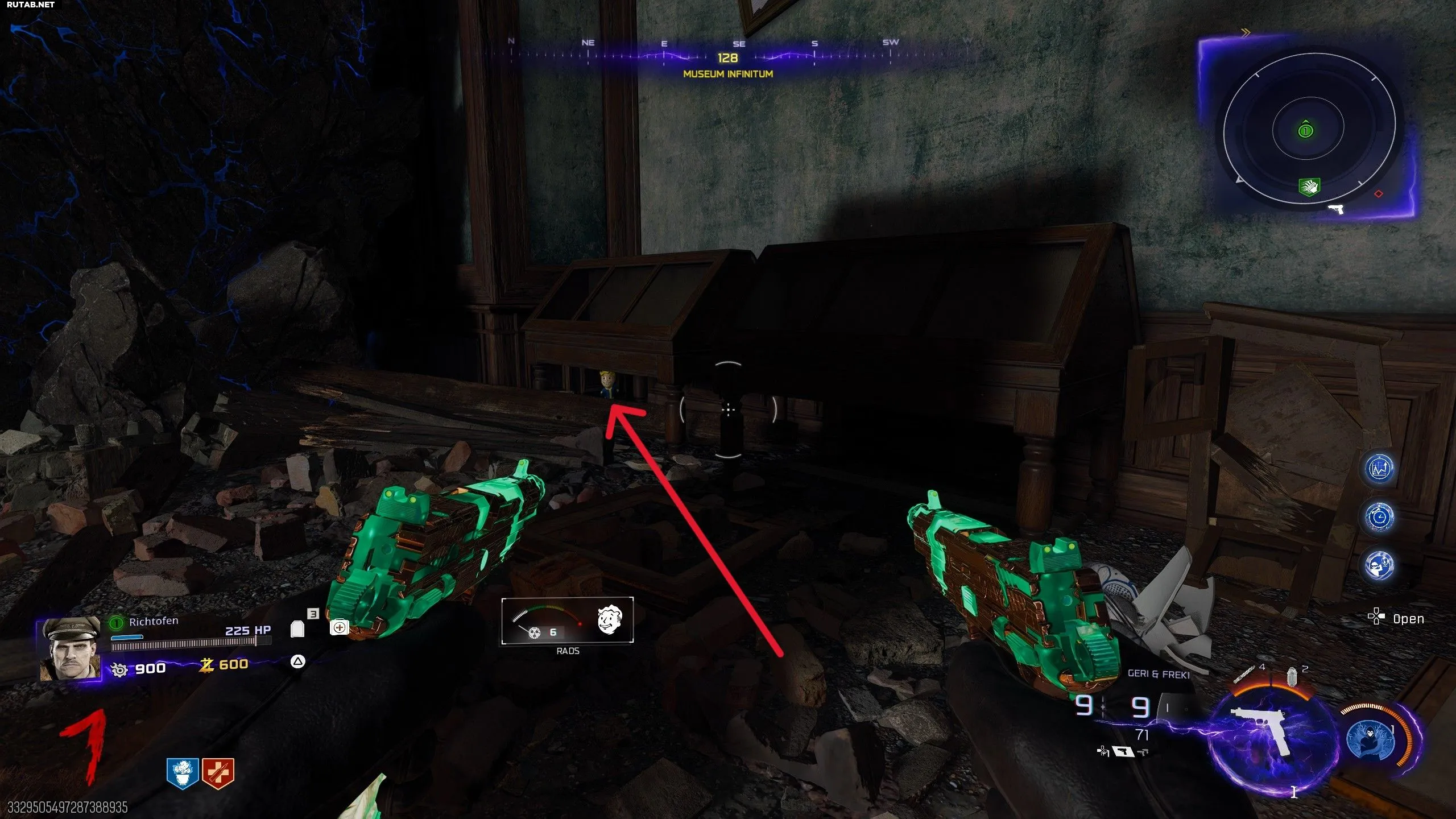 Внутри Museum Infinitum, где находится Speed Cola, прижмитесь к правой стене и осмотрите юго-восточный угол. Вам нужно будет пригнуться, чтобы найти фигурку Валт-Тек, спрятанную под витринными стеллажами.