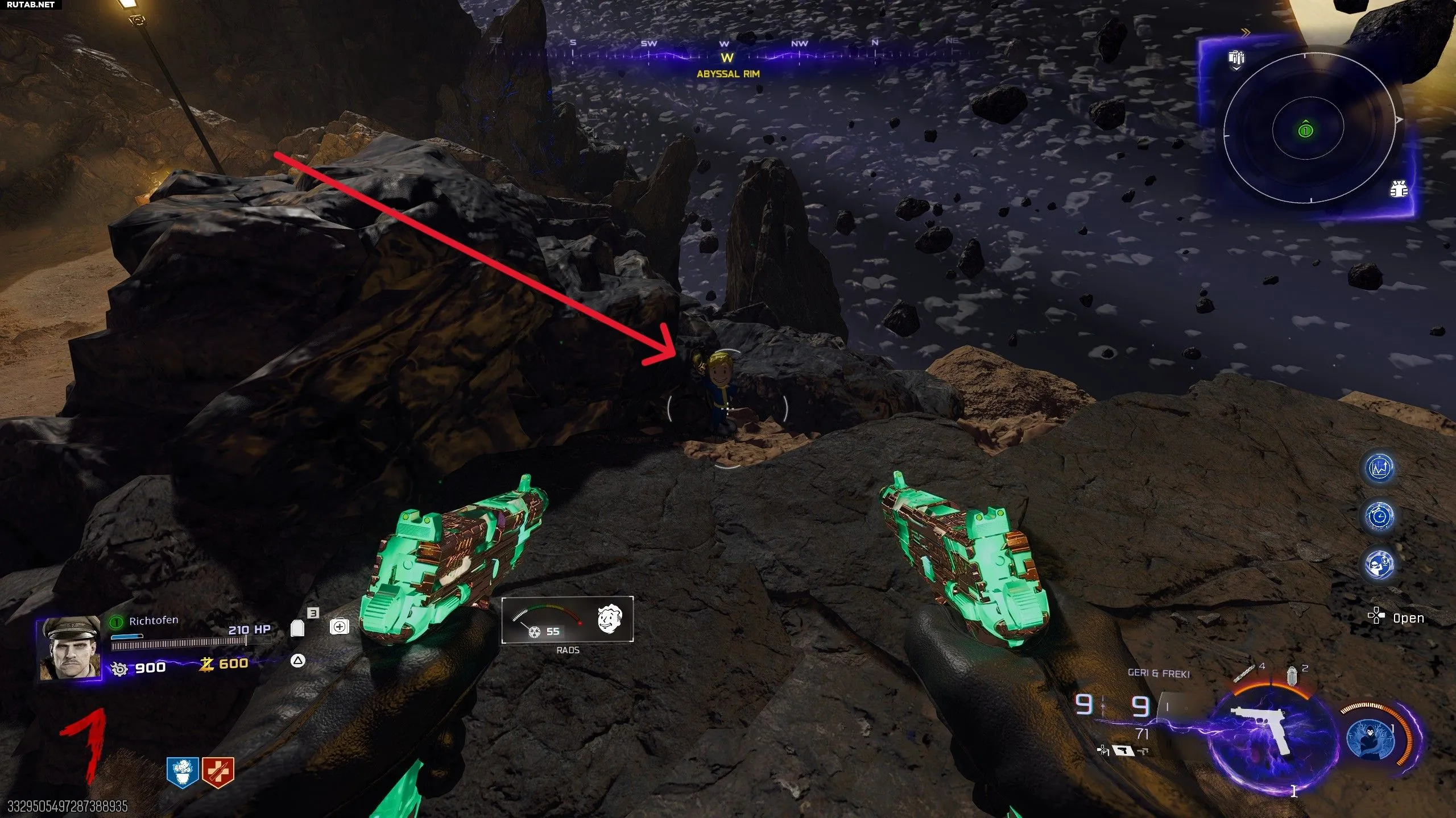 Попасть на космодром «Заря» можно по дороге через Выход 115 или с юго-востока от Эшвуда. Вам нужно открыть запертые ворота у ракетного стартового комплекса. Спуститесь по тросу в огневой лоток, развернитесь на юго-восток, и вы увидите фигурку Валт-Боя на приподнятой платформе. Просто запрыгните под неё и, удерживая кнопку взаимодействия, подберите.
