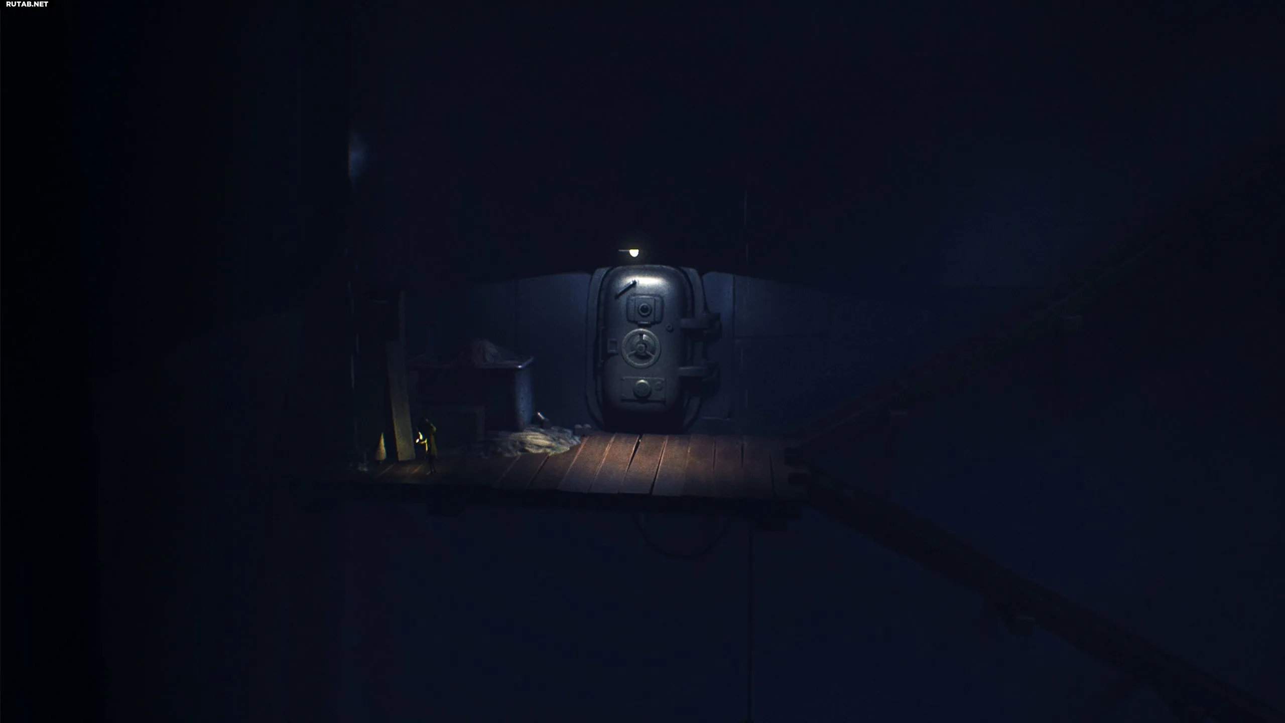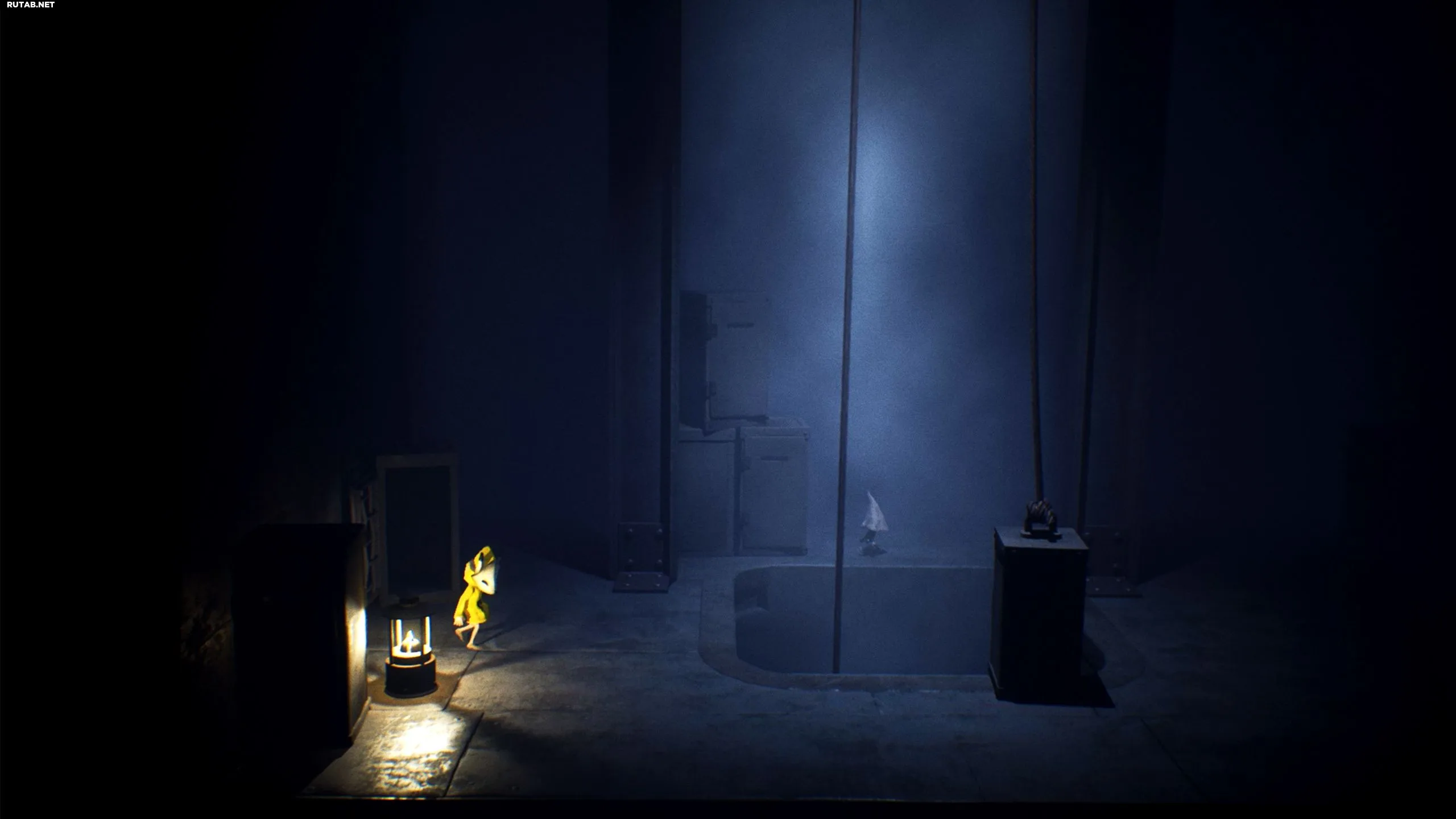 После первого приступа голода Сикс, в высокой комнате с клетками заберитесь на качающийся ящик. Используйте цепи, чтобы подняться выше, и потяните два рычага, чтобы сдвинуть ящик влево. Быстро запрыгните на него и снова используйте цепи, чтобы перепрыгнуть налево. Используйте ящики, чтобы добраться до рубильника и выключить его. Пройдите через прутья, откройте клетку нома и проследуйте за ним в предыдущую комнату для объятий.