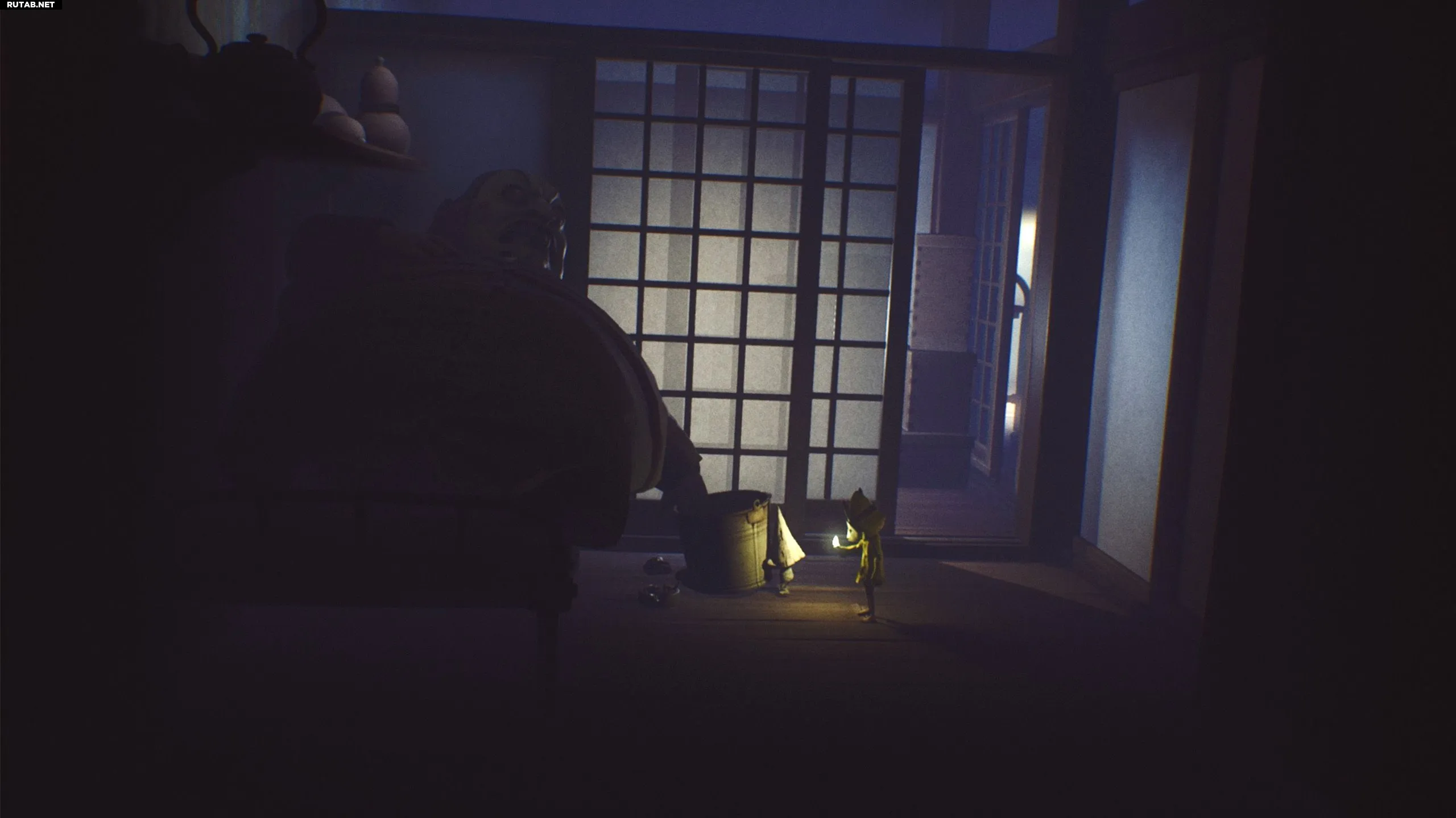 Воспользуйтесь лифтом, чтобы подняться после ухода от Повара. Идите налево через едва приоткрытые ширмовые двери и подойдите к ному рядом со спящим Гостем.