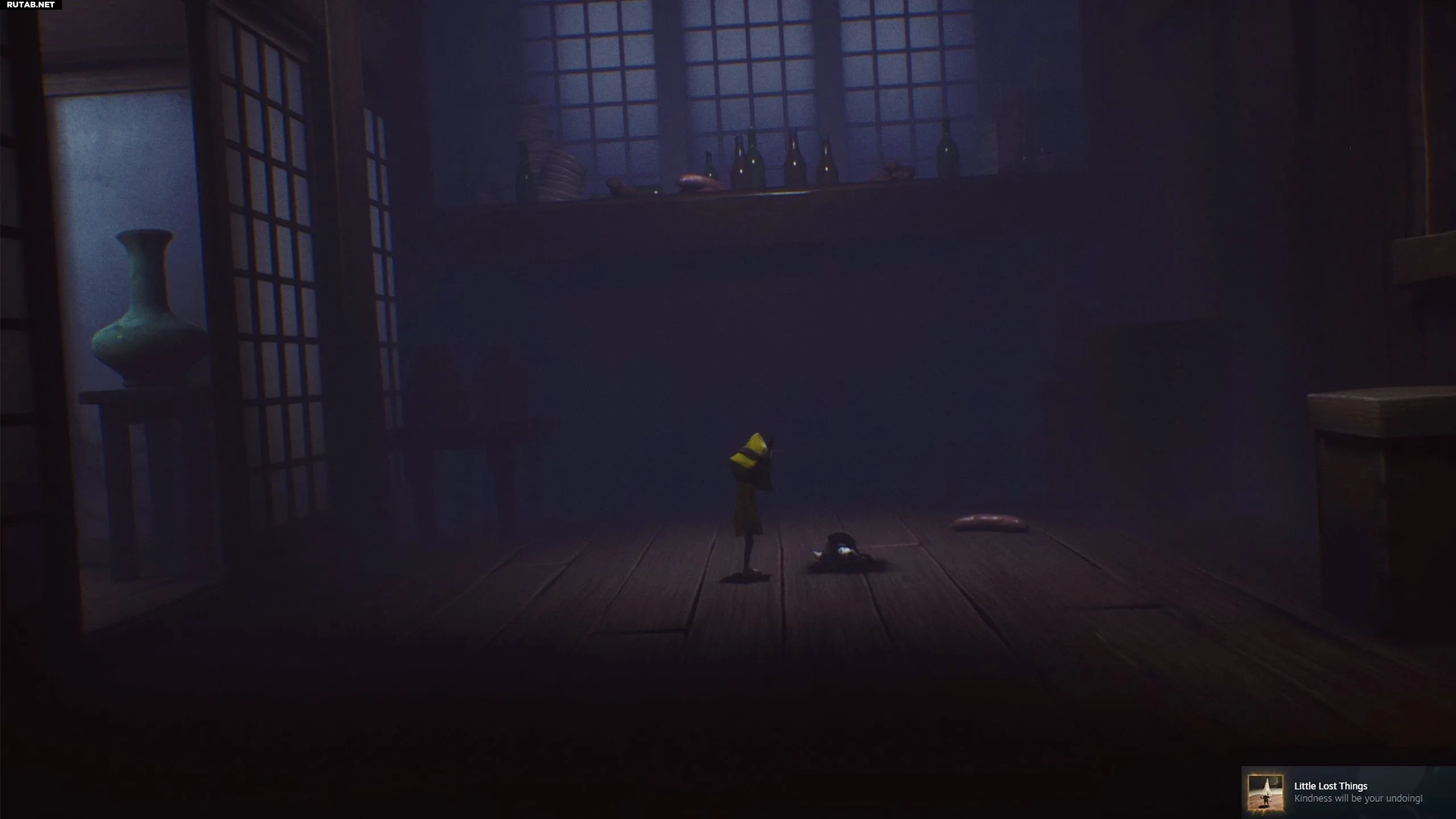 Наконец, после долгой погони у Сикс случится приступ голода. Подойдите к ному с сосиской, чтобы «обнять» его и получить трофей «Маленькие потерянные вещи». После завершения игры количество обнятых номов будет показано в финальной сцене, когда Сикс покидает Утробу.
