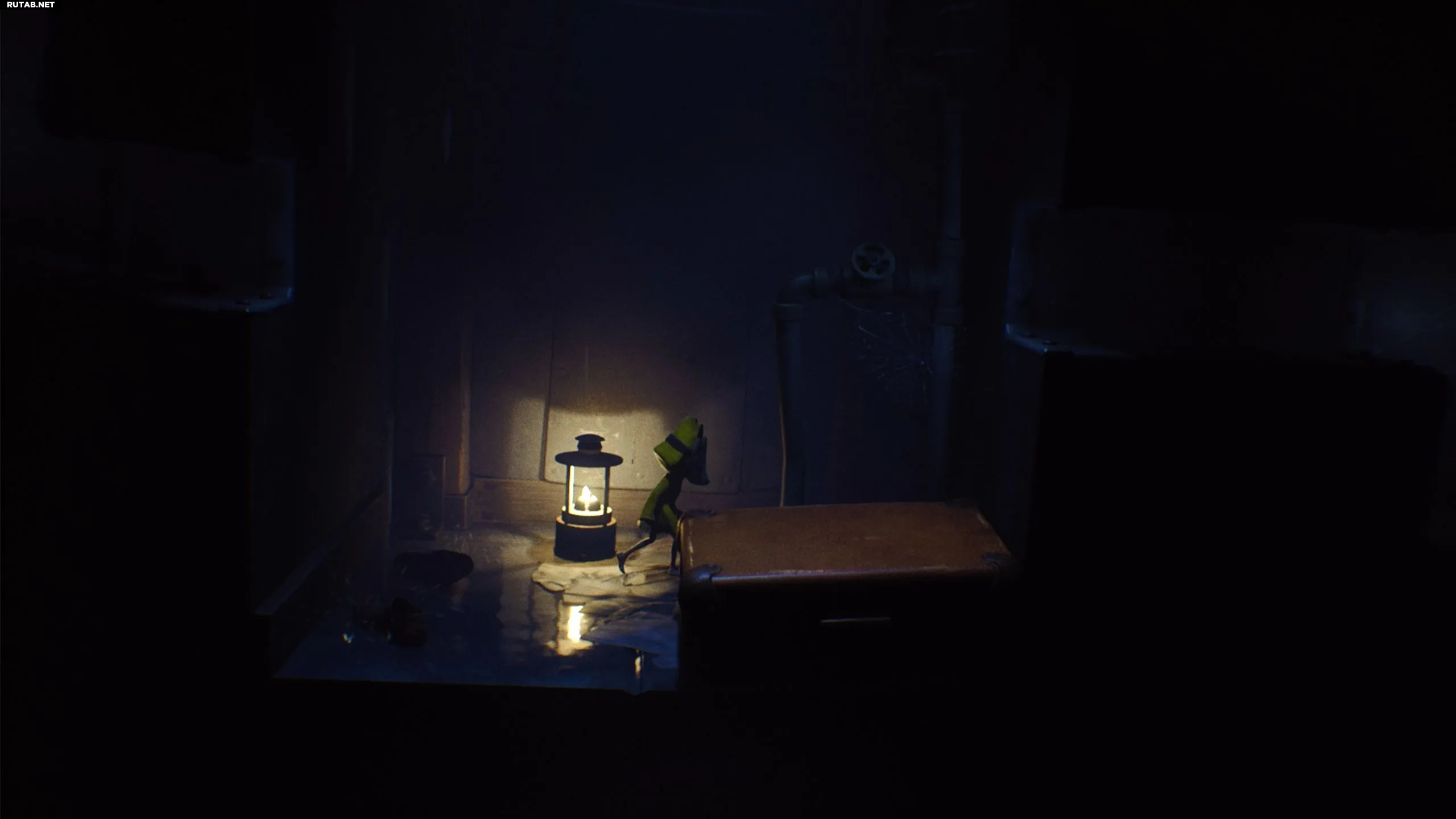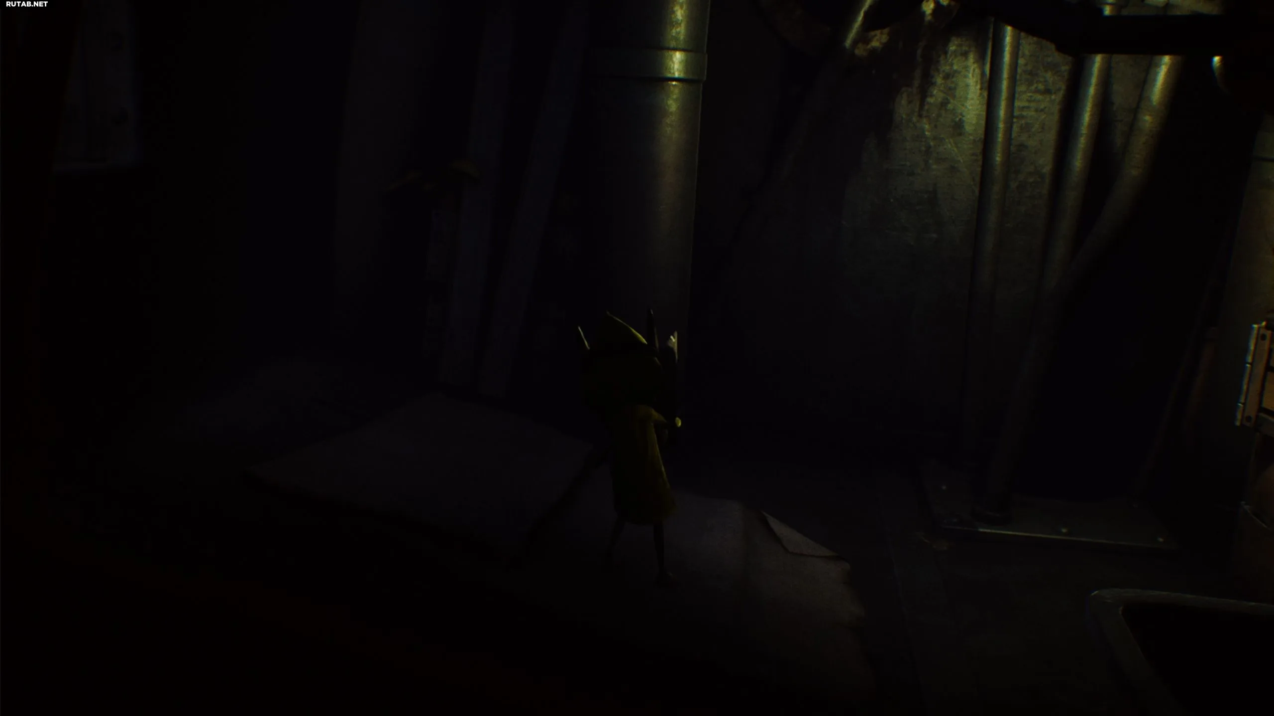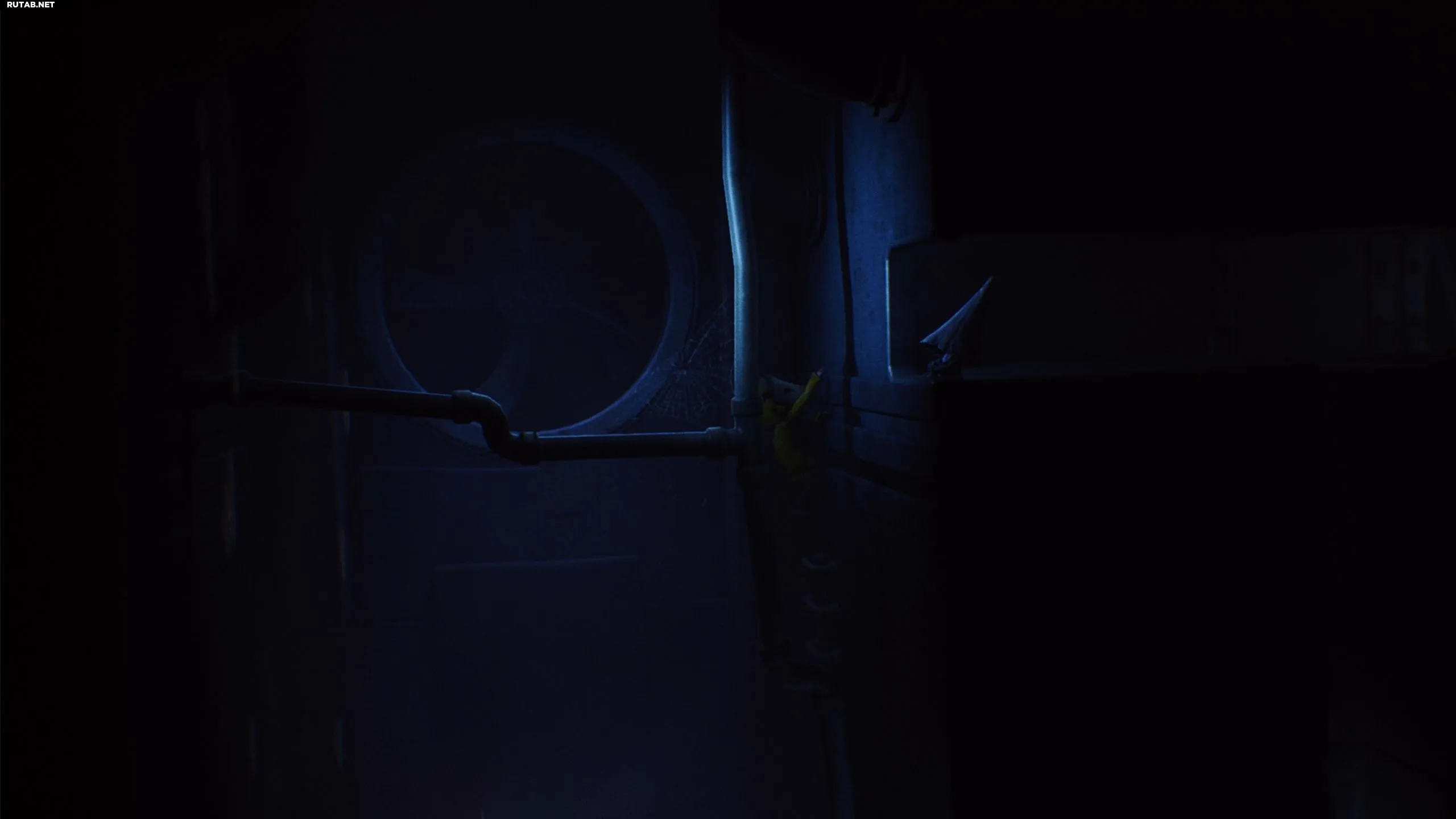 После поворота рычага и падения в люк в вентиляцию, заберитесь по лестнице рядом с фонарем и двигайтесь вбок, где сидит ном. Пройдите дальше, чтобы обнять его.