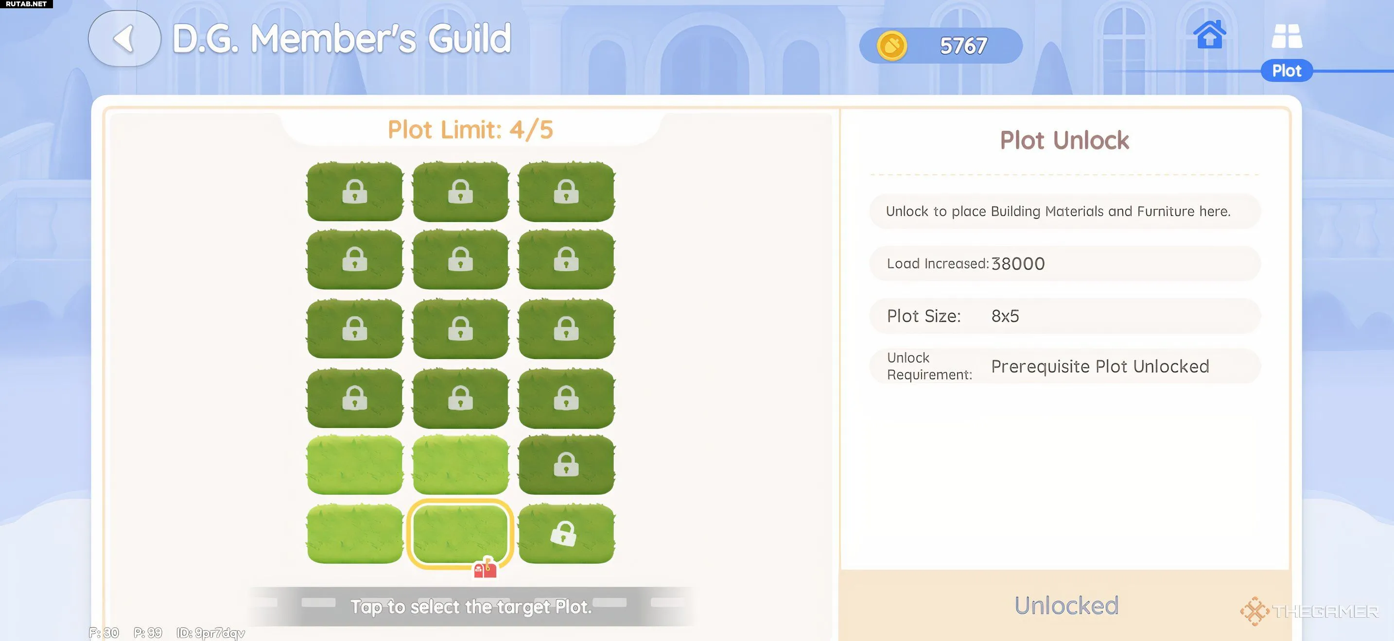 Чтобы просмотреть и расширить доступные домашние участки, откройте экран Гильдии членов D.G. и выберите значок из четырёх квадратов в правом верхнем углу. Оттуда вы сможете увидеть, какие участки доступны для расширения, и управлять своей растущей собственностью по мере роста ранга в гильдии.