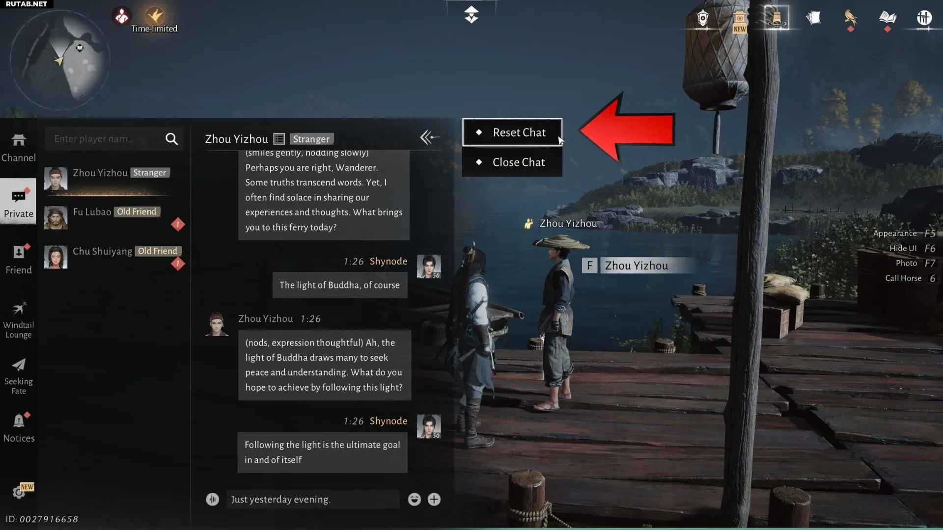 Поскольку чат-бот Чжоу Ичжоу работает на ИИ, возможно, диалог, сработавший у нас, не сработает у вас. В таком случае сбросьте диалог, нажав на три точки рядом с его именем и выбрав опцию «Сбросить чат», чтобы попробовать снова.