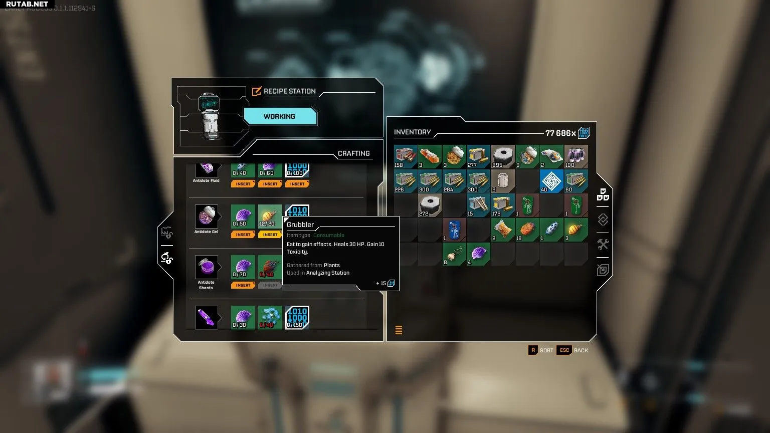 Все рецепты, для которых нужен Grubbler в StarRupture