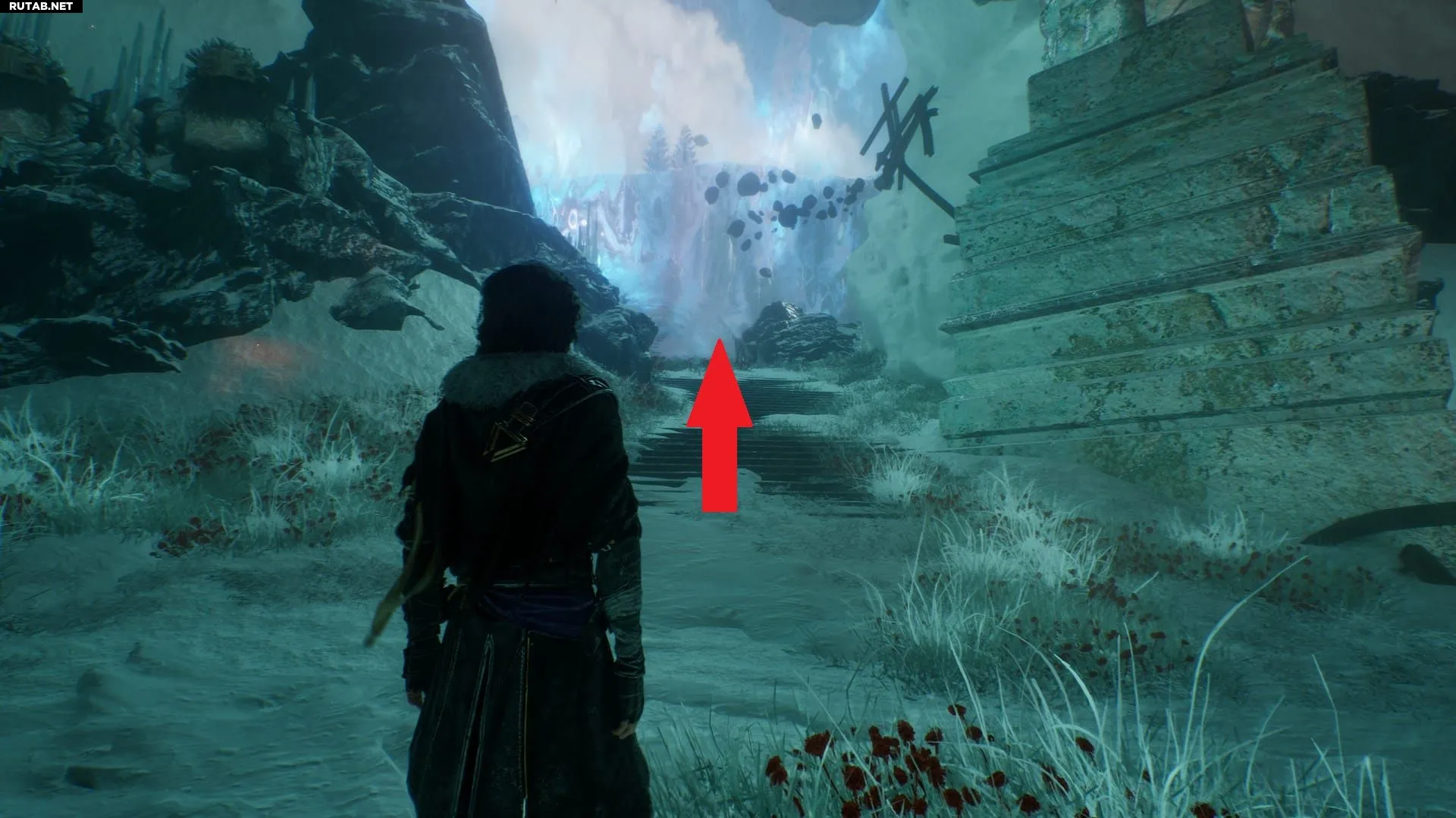 Важно использовать именно этот выход. Другой ведет к локации «Замерзшие Сердца», что является неправильным направлением.