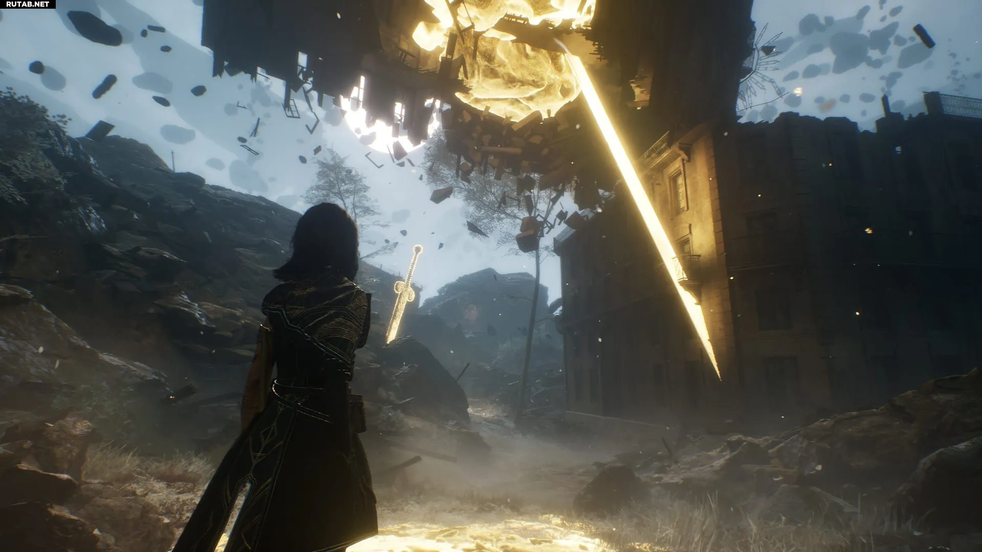 Отсюда вам нужно двигаться на север по карте мира, сверяясь с ней (вызывается кнопкой вверх на крестовине). Чтобы найти вход в Старый Люмьер, ищите воткнутые в землю светящиеся мечи. Идите по направлению к ним, и вы найдете тропу, ведущую к порталу в Старый Люмьер.
