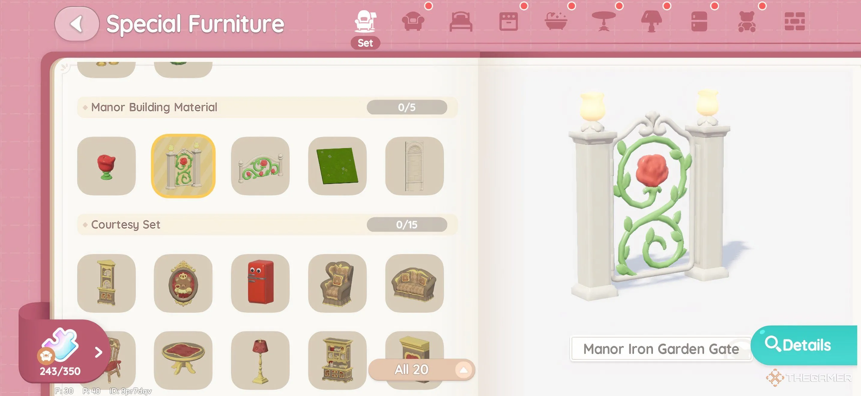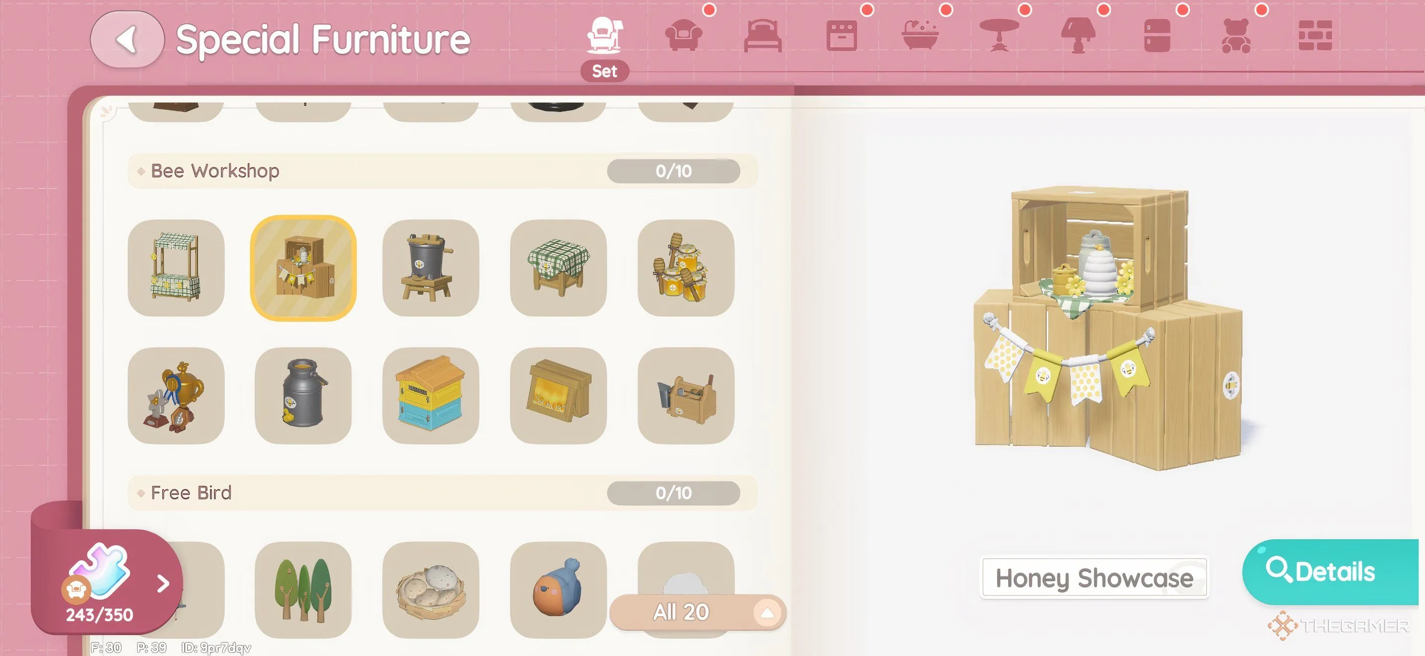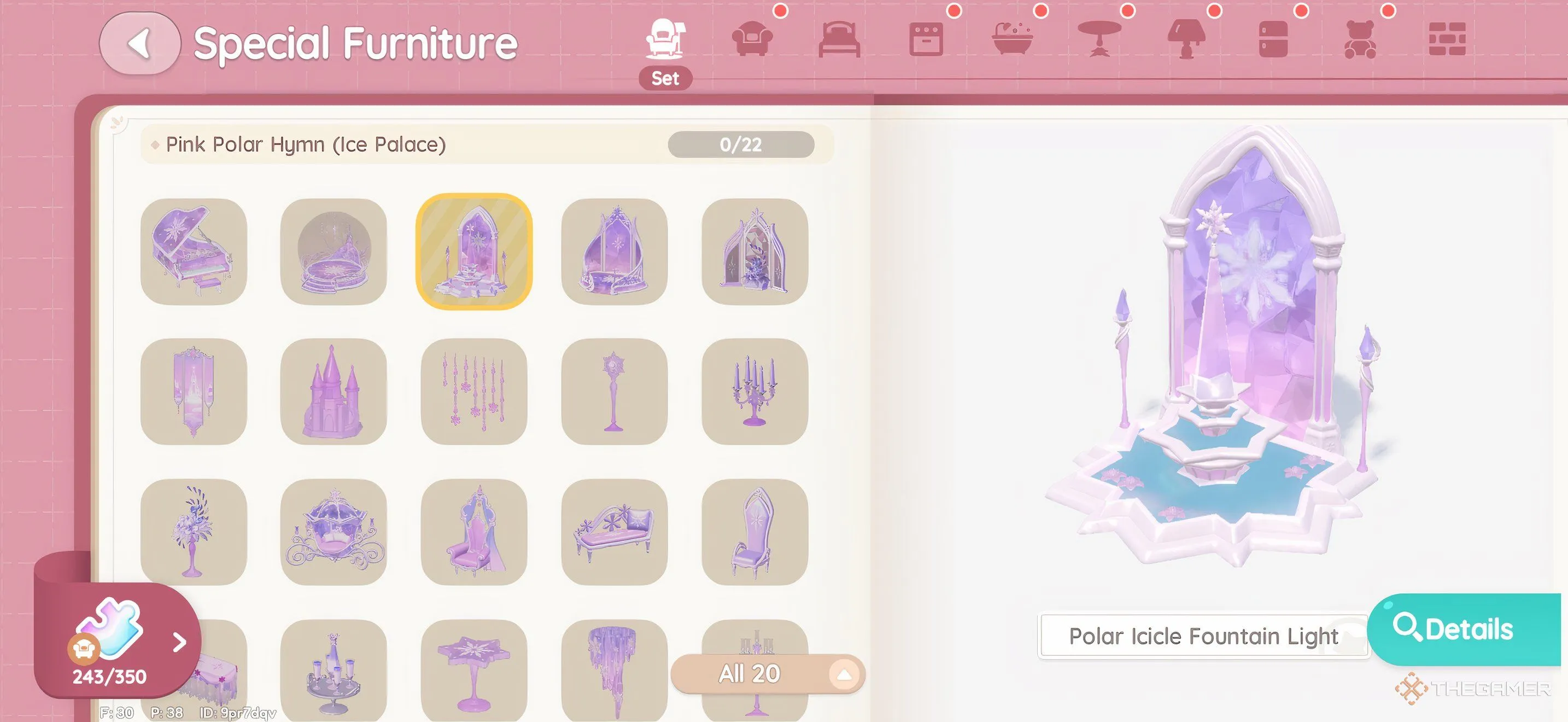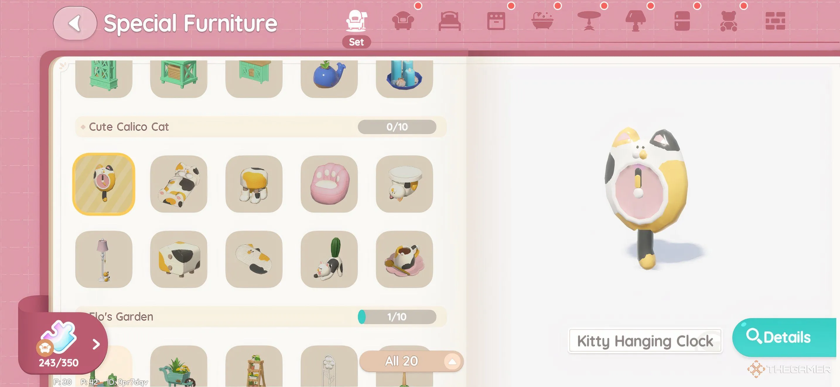Некоторые наборы мебели появляются во временных магазинах или событиях. Если для набора требуются очки коллекции, в первую очередь выполните задания Гильдии членов D.G., чтобы получить доступ к этим наградам.