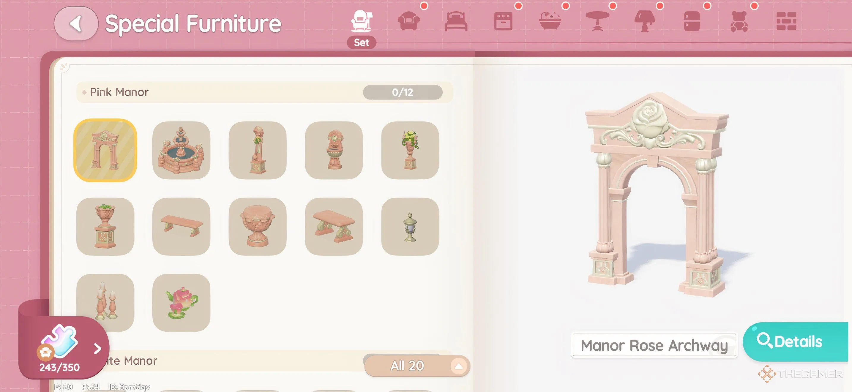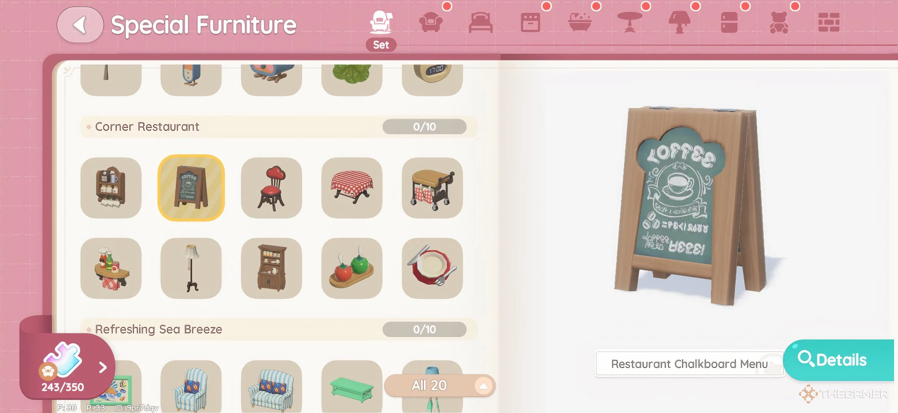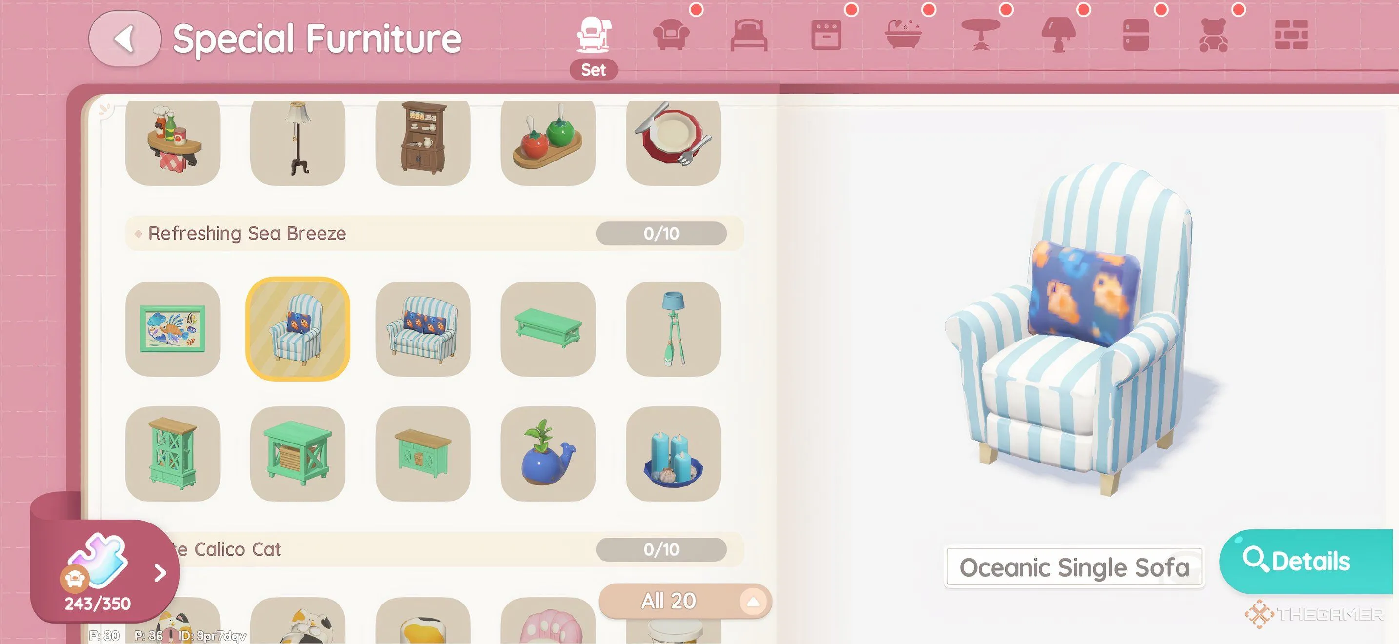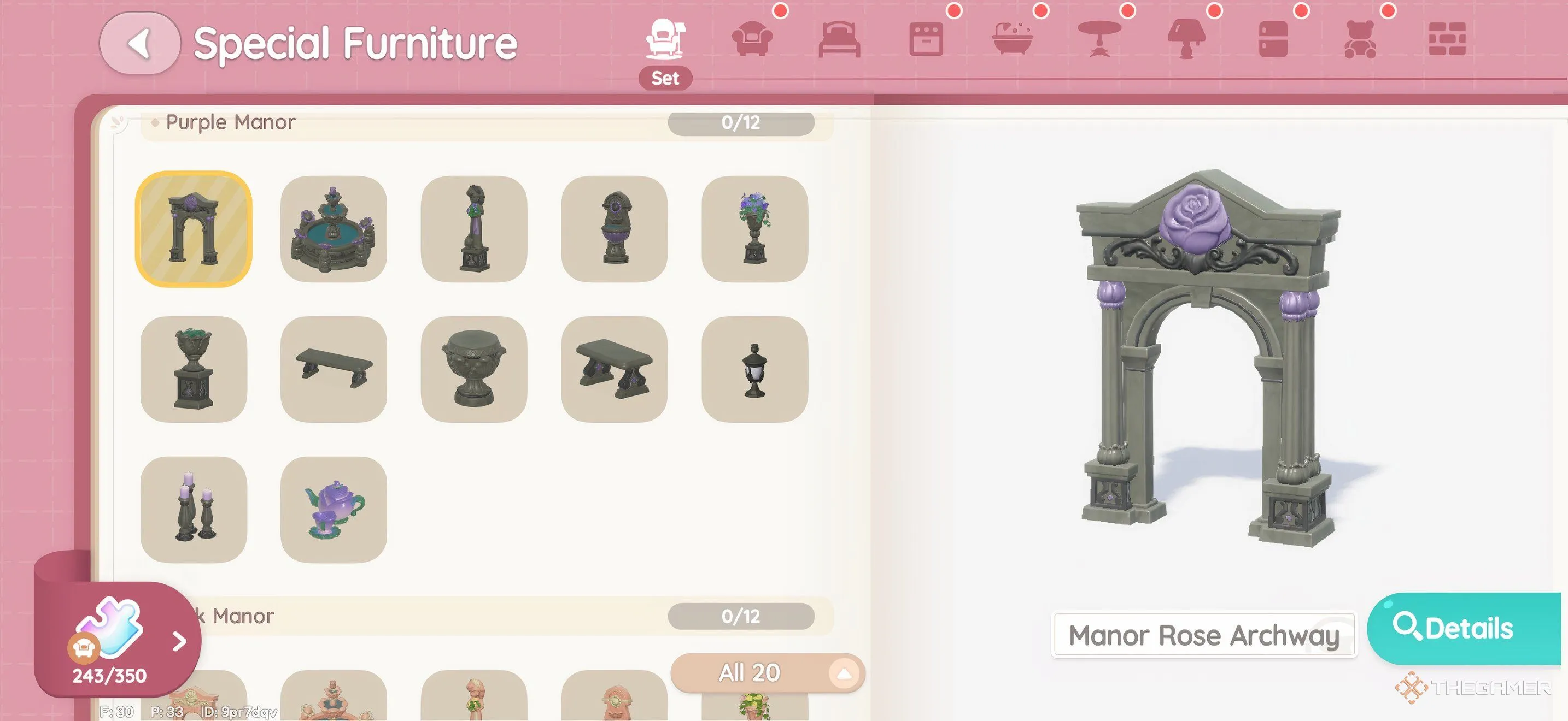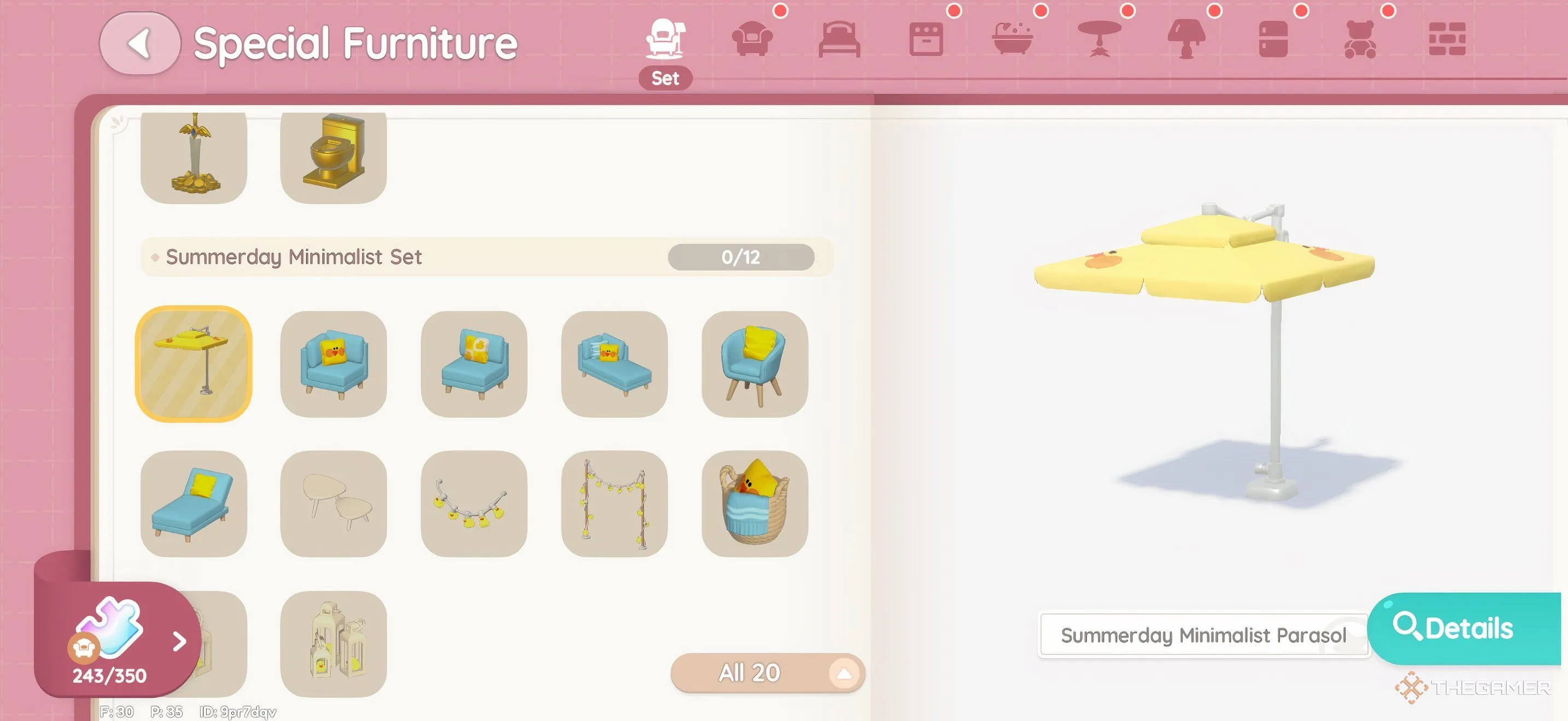 Некоторые наборы мебели появляются во временных магазинах или событиях. Если для набора требуются очки коллекции, в первую очередь выполните задания Гильдии членов D.G., чтобы получить доступ к этим наградам.