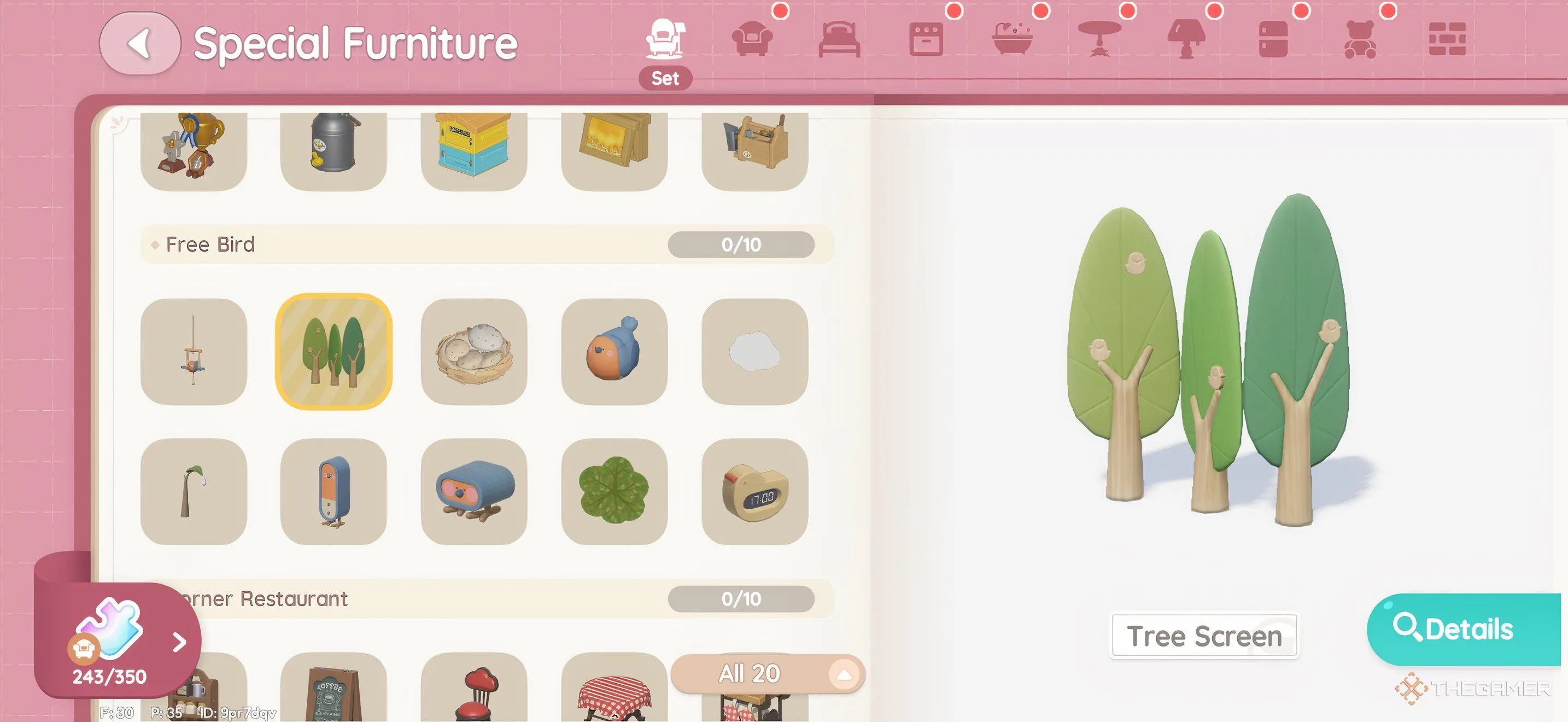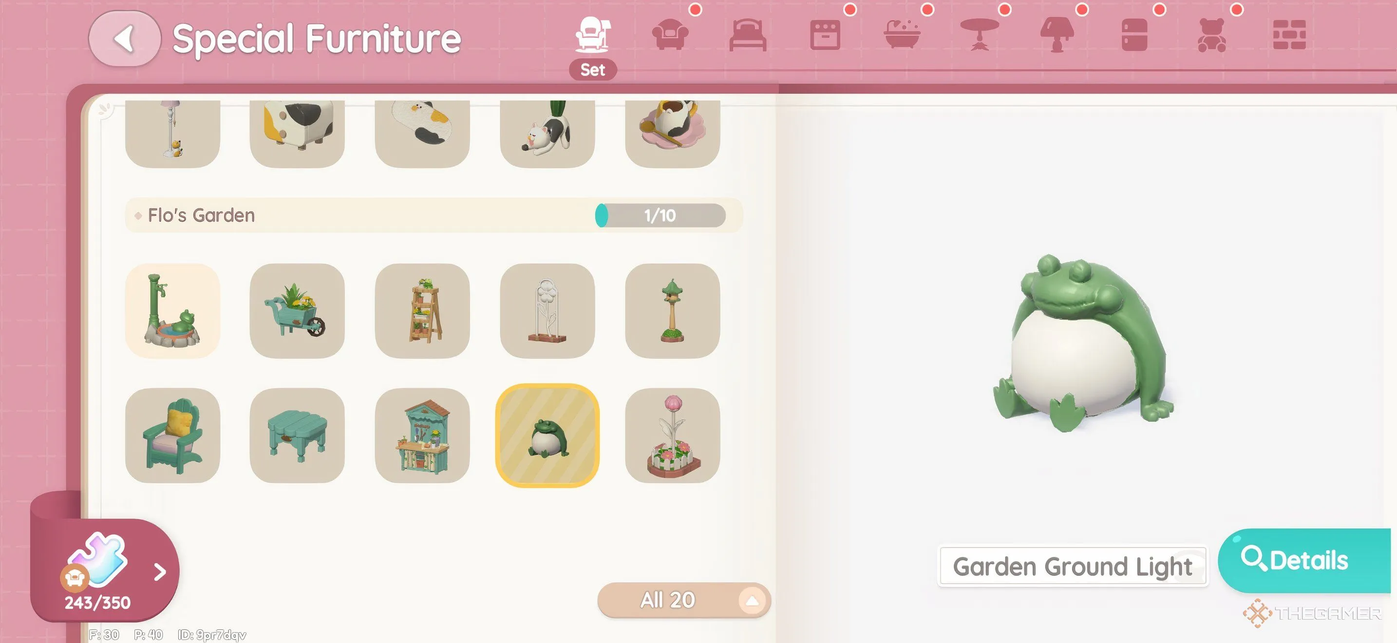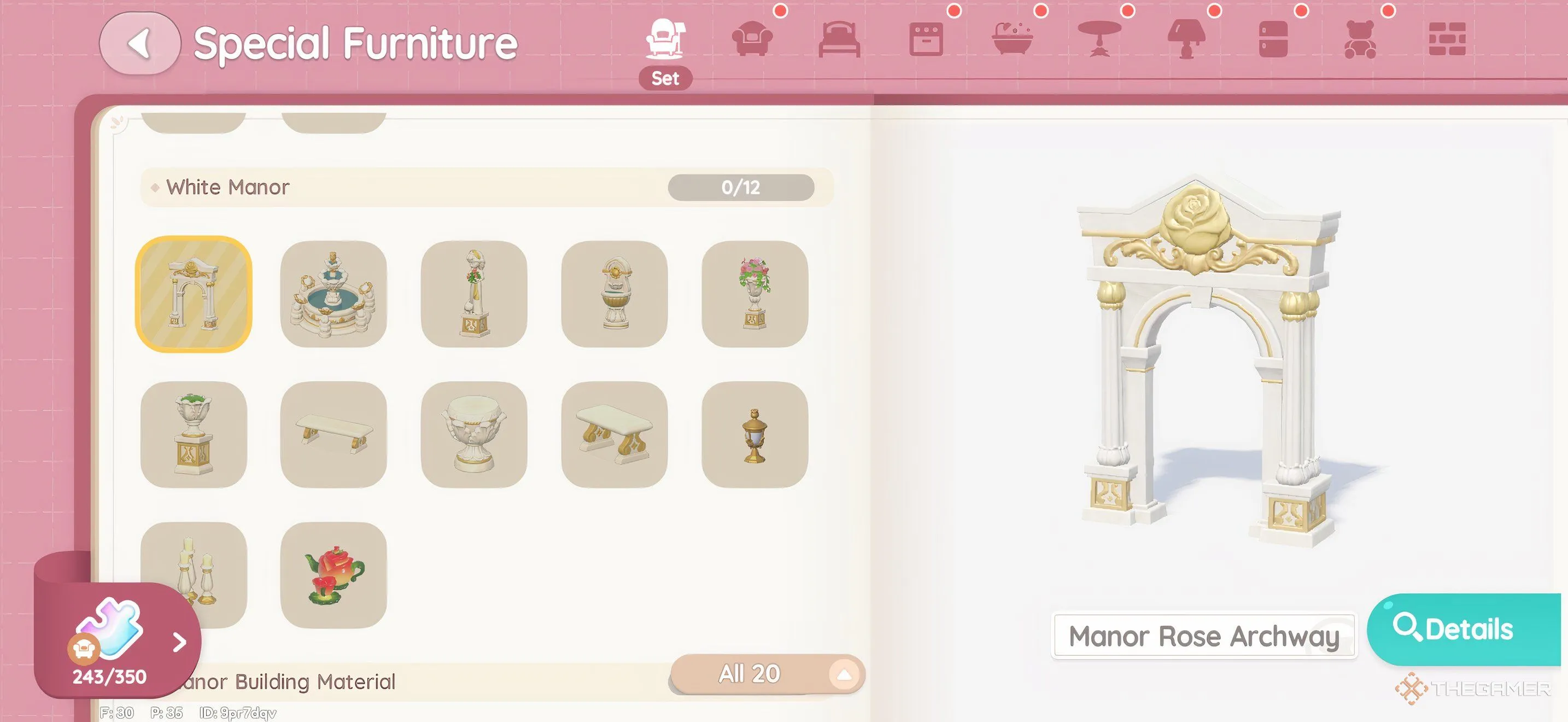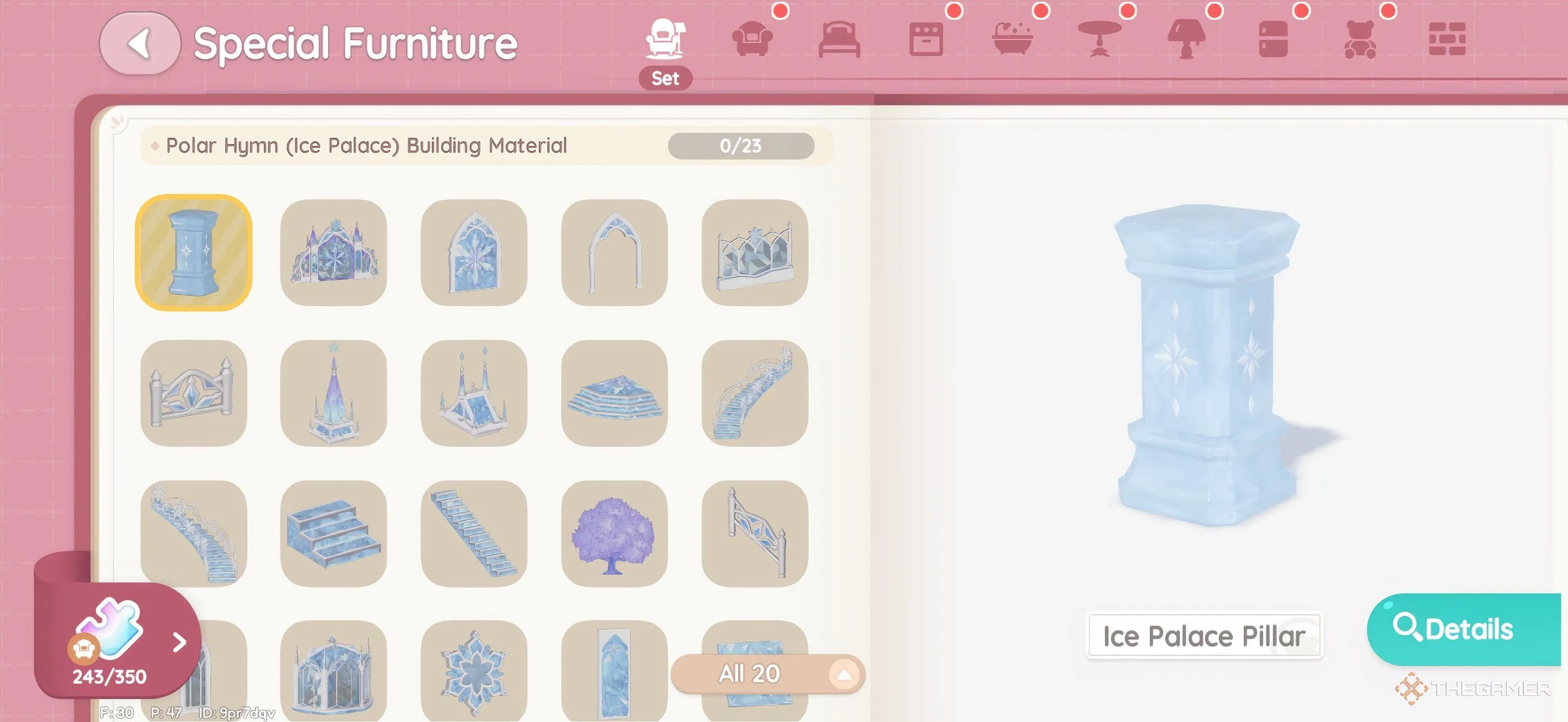 Некоторые наборы мебели появляются во временных магазинах или событиях. Если для набора требуются очки коллекции, в первую очередь выполните задания Гильдии членов D.G., чтобы получить доступ к этим наградам.