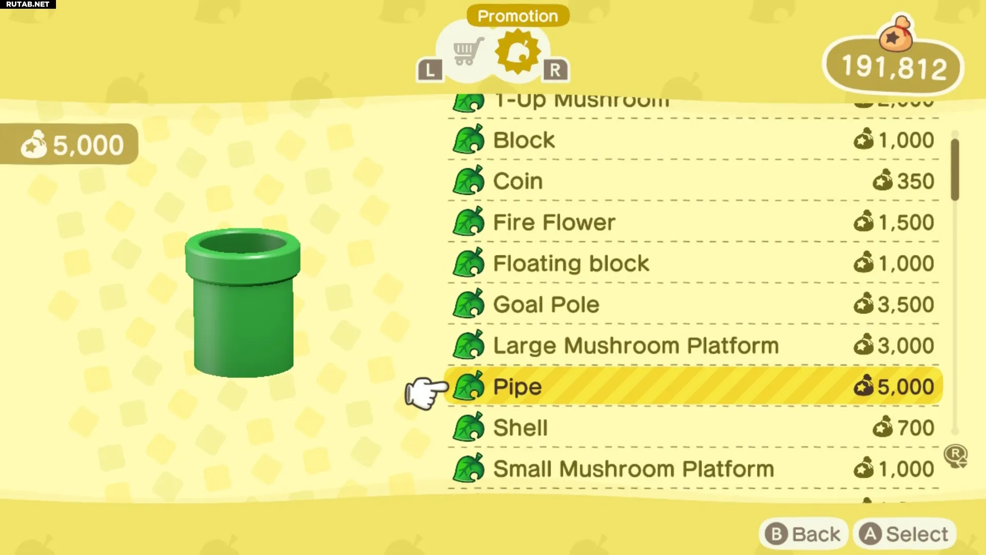 Пока вы делаете покупки в «Нук Стоп», стоит приобрести пару труб Марио в разделе «Особые товары» приложения «Нук Шоппинг». Зачем? Их можно разместить в разных частях острова для мгновенного перемещения между ними. Лично я поставил одну у себя дома, чтобы всегда можно было быстро вернуться из любой точки, но вы можете использовать их как угодно. Правда, каждая труба обойдётся вам в 5000 миль Нука, так что копите.