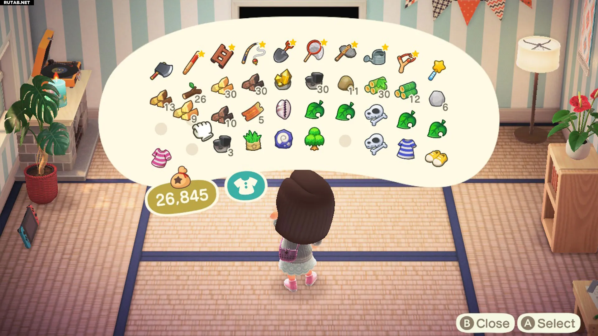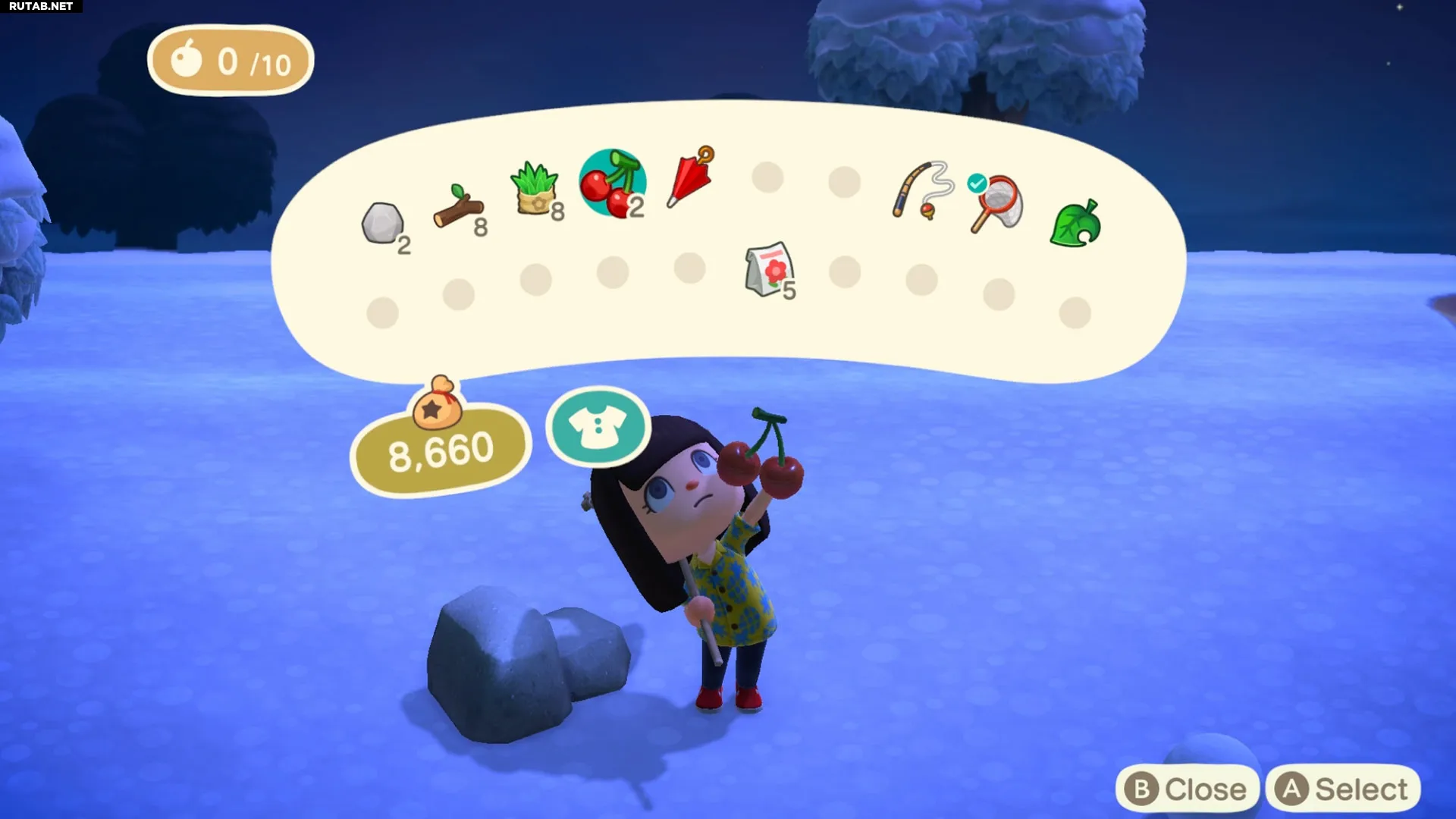 В Animal Crossing: New Horizons система инвентаря немного улучшилась. Сначала мы были в восторге, обнаружив, что можно собирать сколько угодно сорняков, не занимая ими отдельные слоты, но есть нюанс — каждый тип предметов складывается по-своему, поэтому следите за свободным местом: