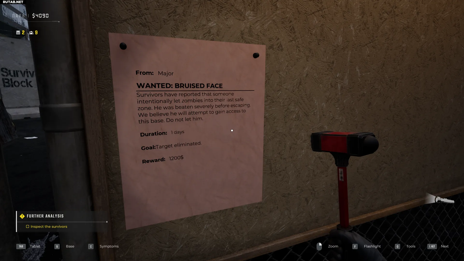 На восьмой день сюжетного режима на доске объявлений появится это задание. Ваша цель — найти мужчину, которого выжившие обвиняют в проникновении зомби. За его успешную ликвидацию вы получите 1200 долларов.