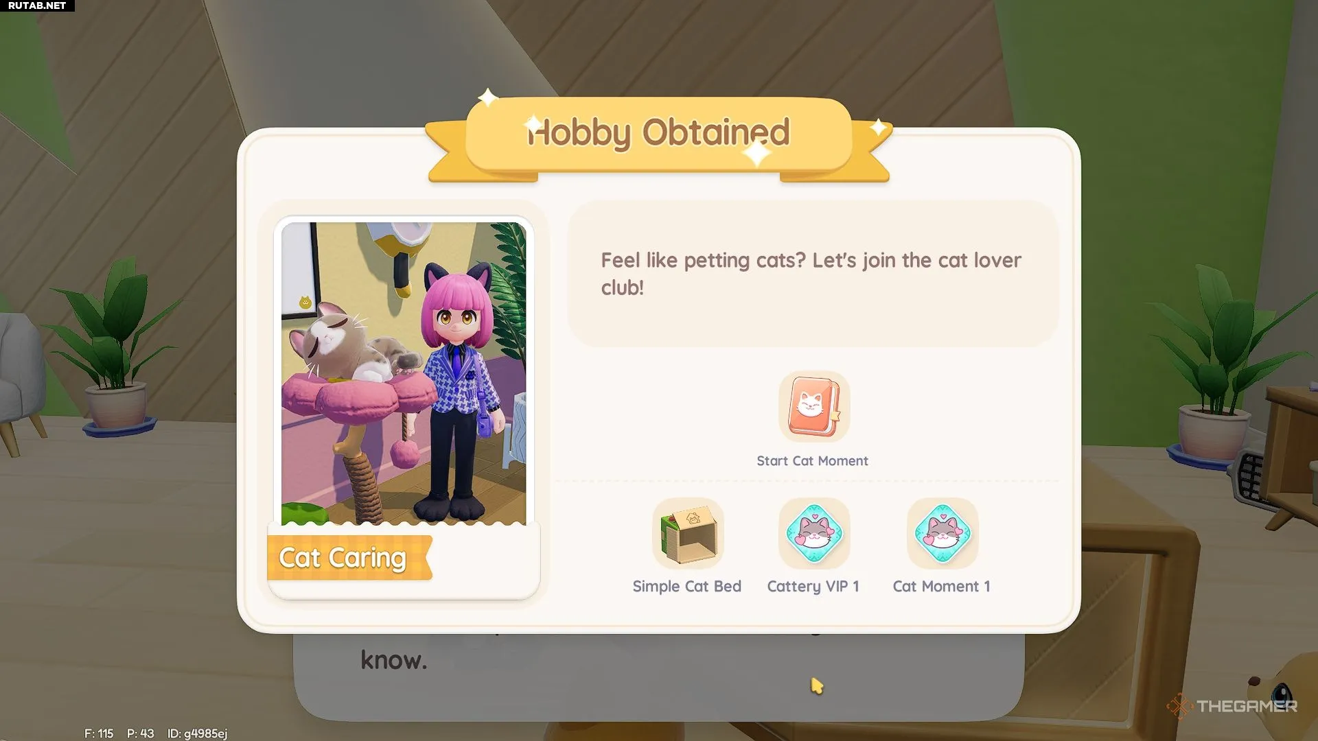 Эти ежедневные взаимодействия помогут вам построить долгосрочные отношения с вашим котом, и по мере повышения уровня хобби вы будете получать бонусы, ускоряющие этот процесс.