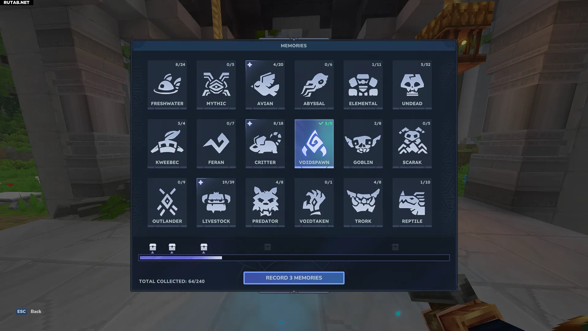 Воспоминания — это журнал встреч с существами. Каждая новая встреча с существом фиксируется. Просмотреть свои Воспоминания можно, открыв инвентарь и нажав на алмаз под иконкой крафта рядом с 3D-моделью персонажа. Сами по себе они ничего не дают. Чтобы получить награды за их сбор, нужно отправиться в Забытый Храм.