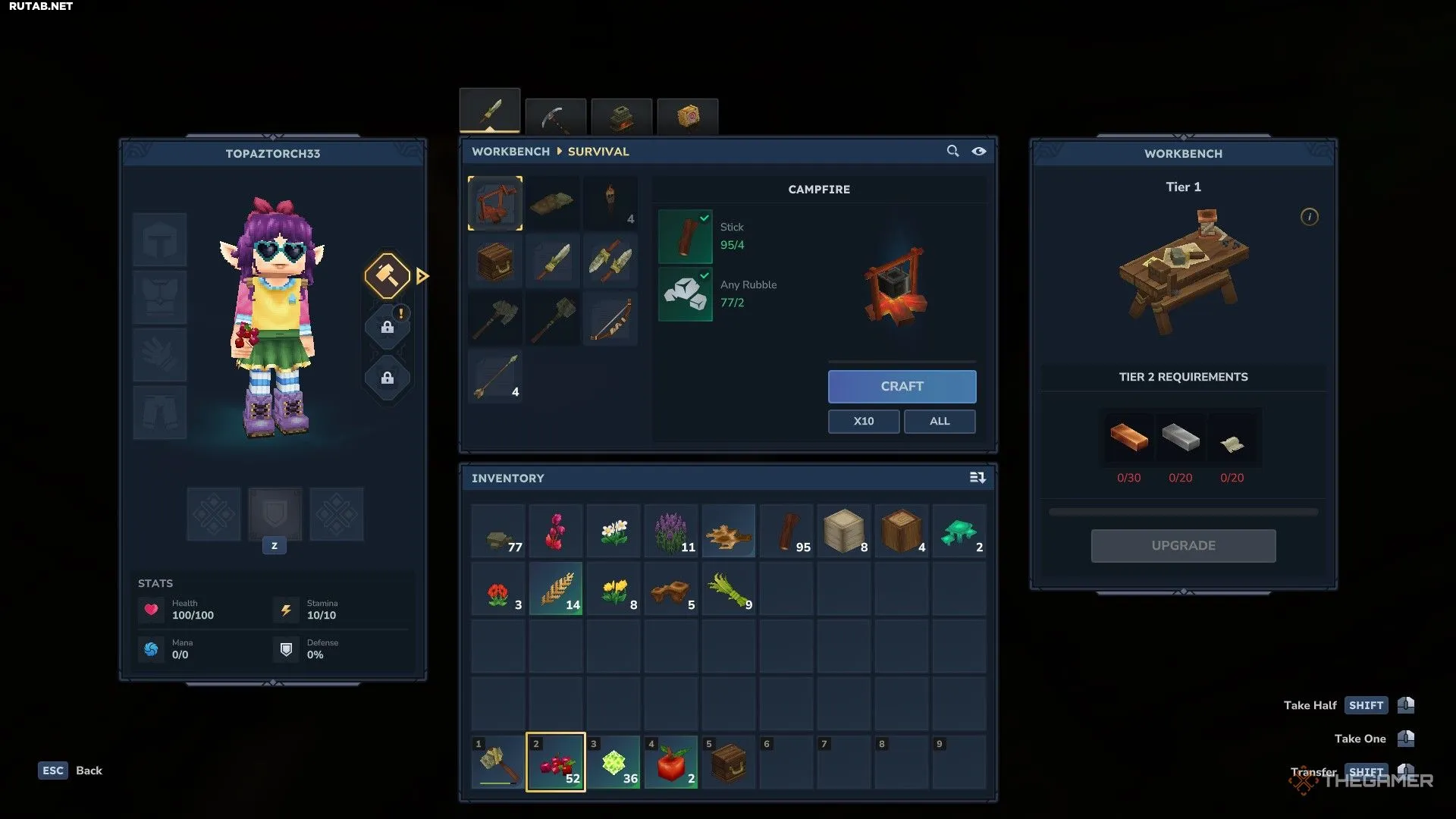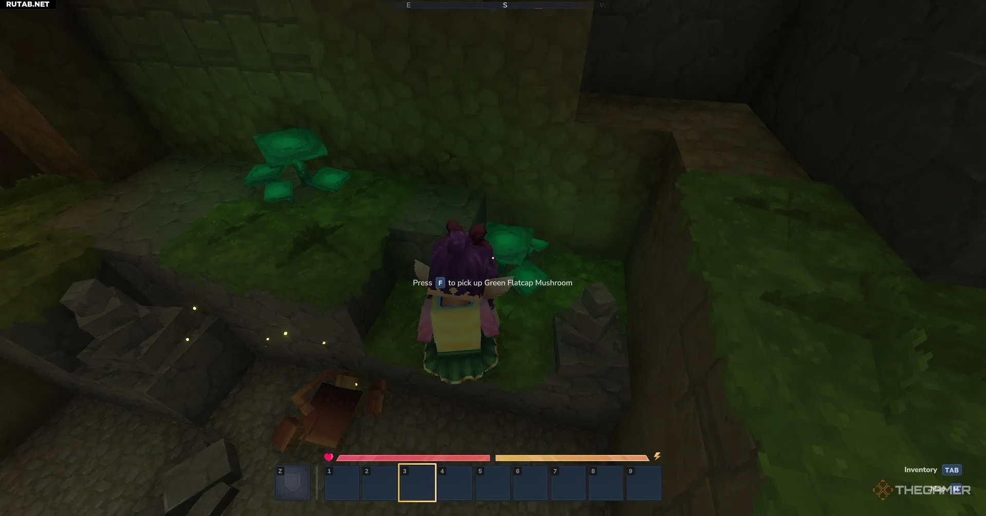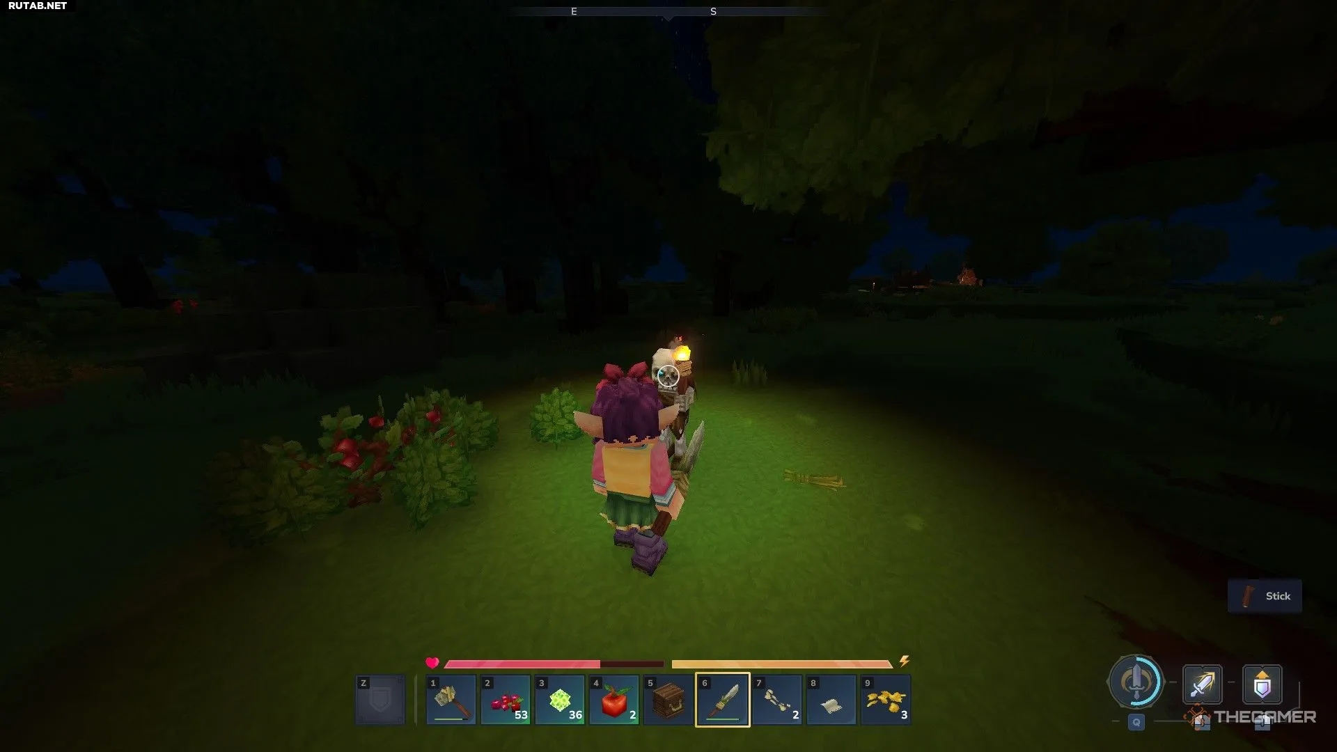 Продукты питания валяются повсюду, а для сбора древесины, камня или цветов вам придётся пройти через соответствующие зоны. Ваш инвентарь больше, чем панель быстрого доступа, так что смело носите с собой больше, чем кажется возможным. Как только вы немного обоснуетесь, полезно организовать склад, особенно когда поймёте, какие ресурсы нужны чаще всего. Лучше иметь запас, чем потом возвращаться.
