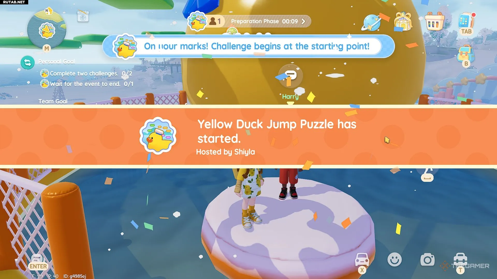 Как только событие начнётся, ваша цель — добраться до вершины утки, не упав. Есть два пути: розовый или зелёный. Розовый путь сложнее, в то время как зелёный обычно проще.