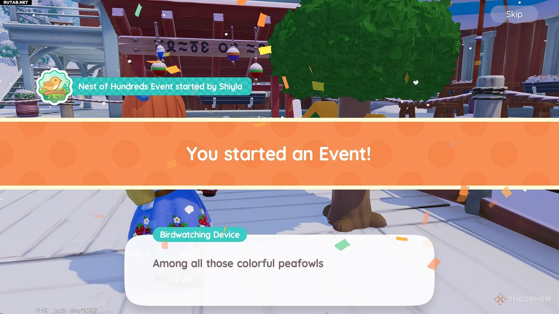 Это событие начинается в западной части Леса Хартопии. У вас будет пять минут, чтобы найти и исследовать как можно больше птичьих гнёзд. Гнёзда могут быть спрятаны на деревьях, в кустах или других укромных местах, поэтому внимательно осматривайтесь.