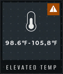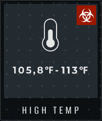 Проявляется как температура выше той, которую человек обычно может пережить: свыше 105°F (40.6°C).