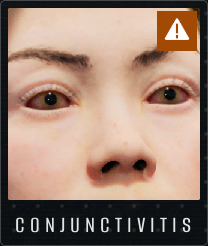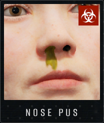 Проявляется как небольшая капля зелёного гноя в уголке одного глаза (возможно, в обоих, не уверен). Может быть очень маленькой и трудноразличимой, особенно на определённых оттенках кожи.