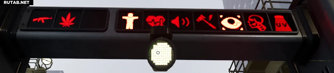 УФ-башня — это инструмент, закреплённый на столе, а не в инвентаре. Нажмите кнопку, чтобы залить зону досмотра УФ-свечением. Эффект длится несколько секунд, после чего башне требуется время на перезарядку, но её можно использовать многократно.