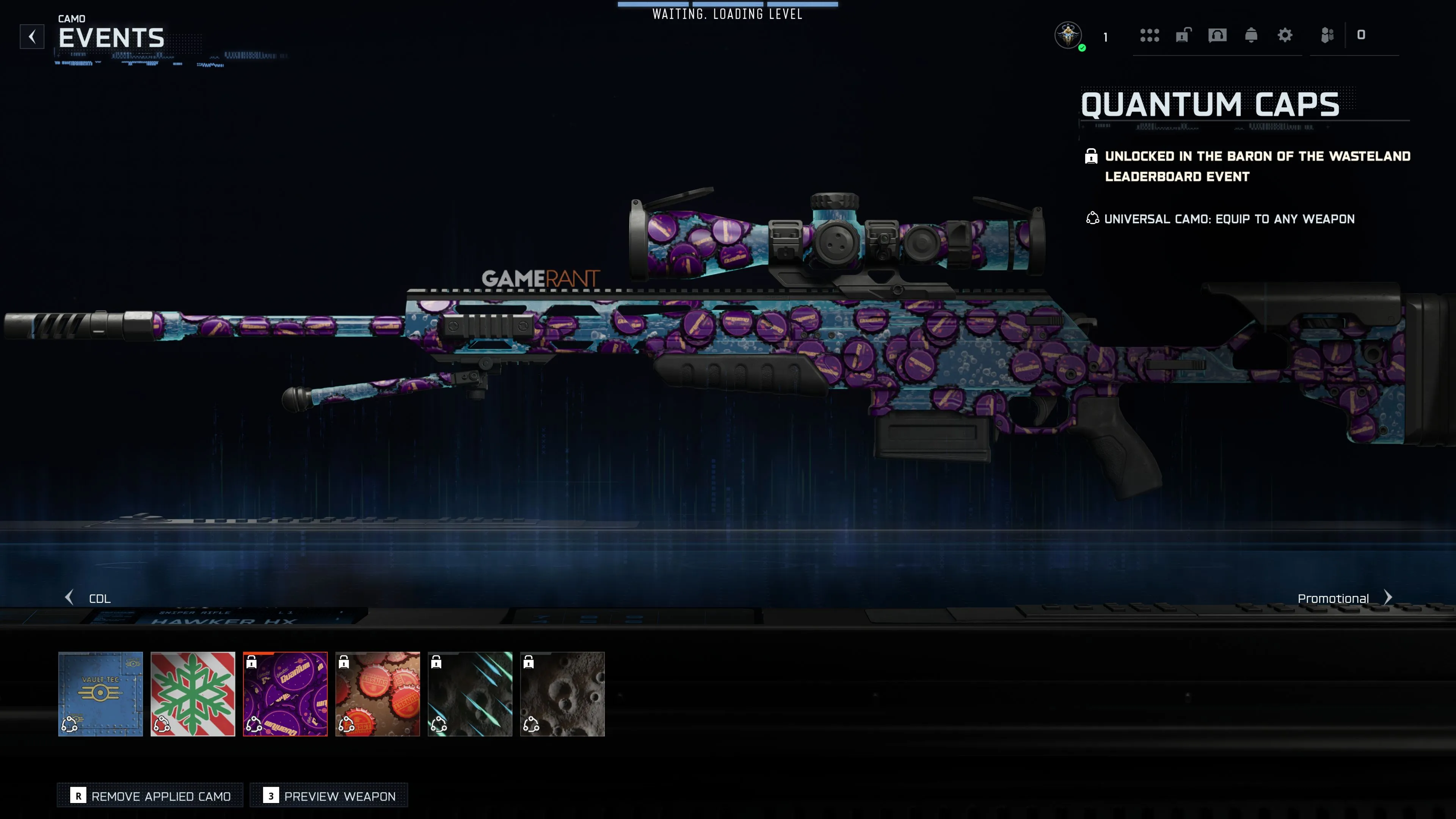 Камуфляж «Квантовые крышки» и эмблема «Барон Пустоши: Топ-5»