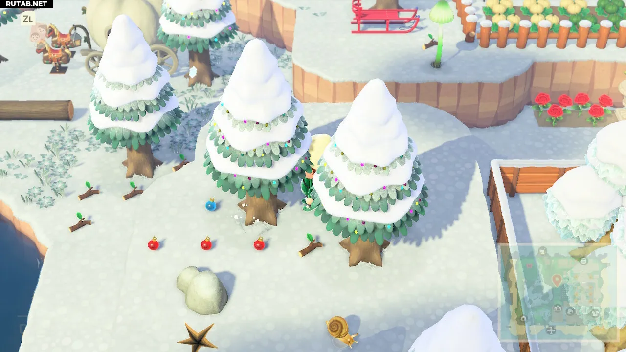 Для создания большинства праздничных предметов вам понадобятся золотые, красные и синие елочные игрушки. Их, как и желуди, можно добыть, тряся деревья. Игрушки выпадают случайным образом, поэтому трясите как можно больше деревьев. Иногда с одного дерева можно получить до пяти разных игрушек.