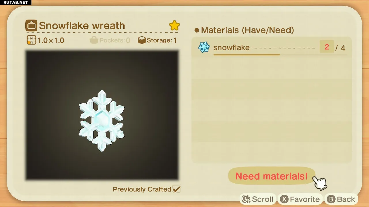 Это самая сложная часть. Как и многие другие сезонные рецепты, чертежи на снежинки выпадают только из подарковых шариков, которые периодически пролетают над островом. Это может раздражать, так как шарики не всегда содержат рецепты — иногда в них мебель, одежда, деньги или ресурсы.