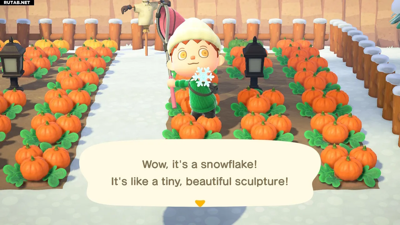 Снежинки парят по всему острову, подобно кленовым листьям. Чтобы поймать их, используйте сачок. Будьте осторожны: после одного-двух промахов снежинка может исчезнуть, поэтому цельтесь аккуратно.