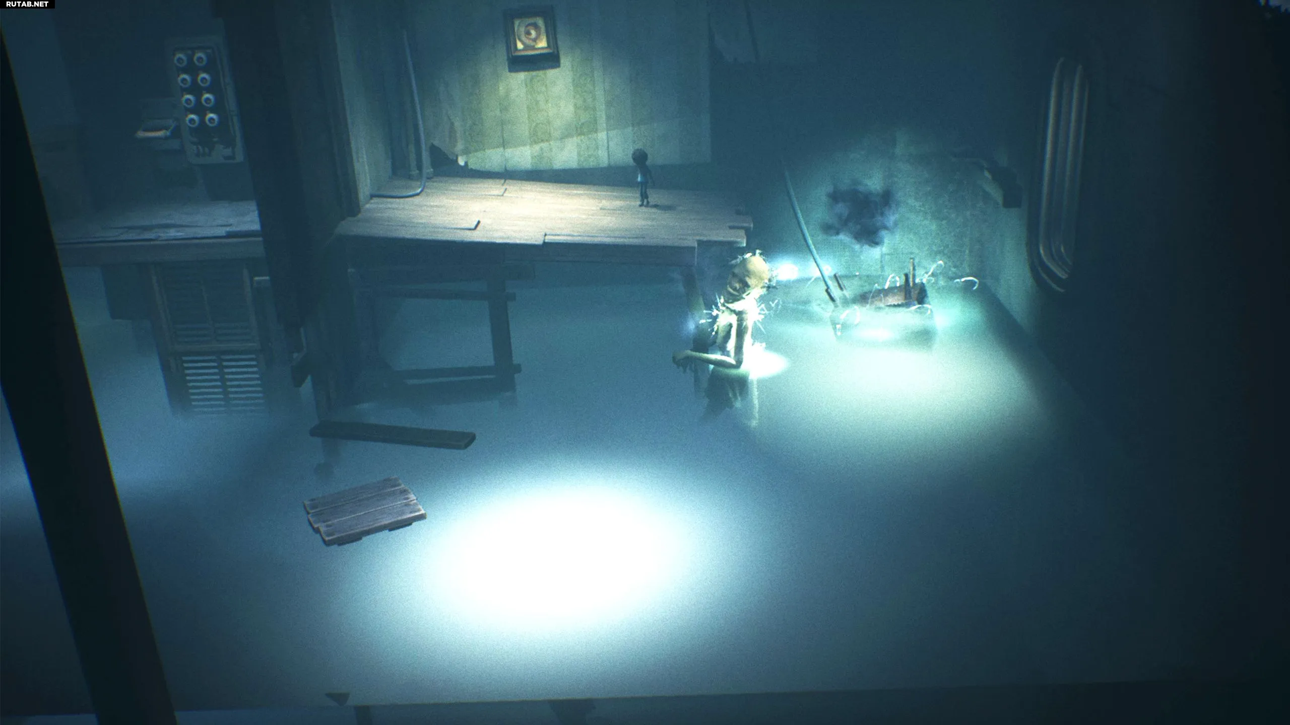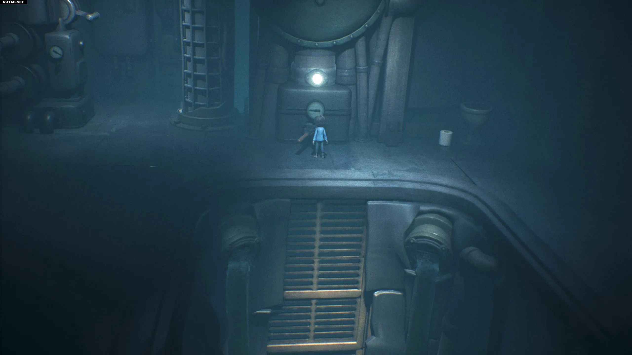 После победы над подводным монстром двигайтесь вперёд: прыгните на телевизор, а затем пройдите через дверь. Вы окажетесь перед лестницей.