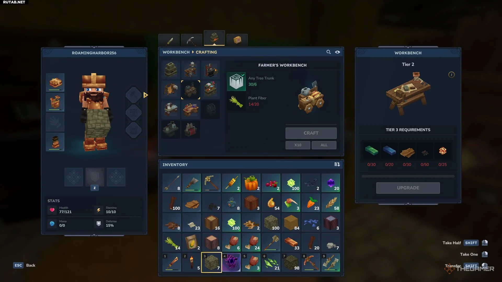 Создать Фермерский верстак можно из шести древесных стволов и 20 растительных волокон.