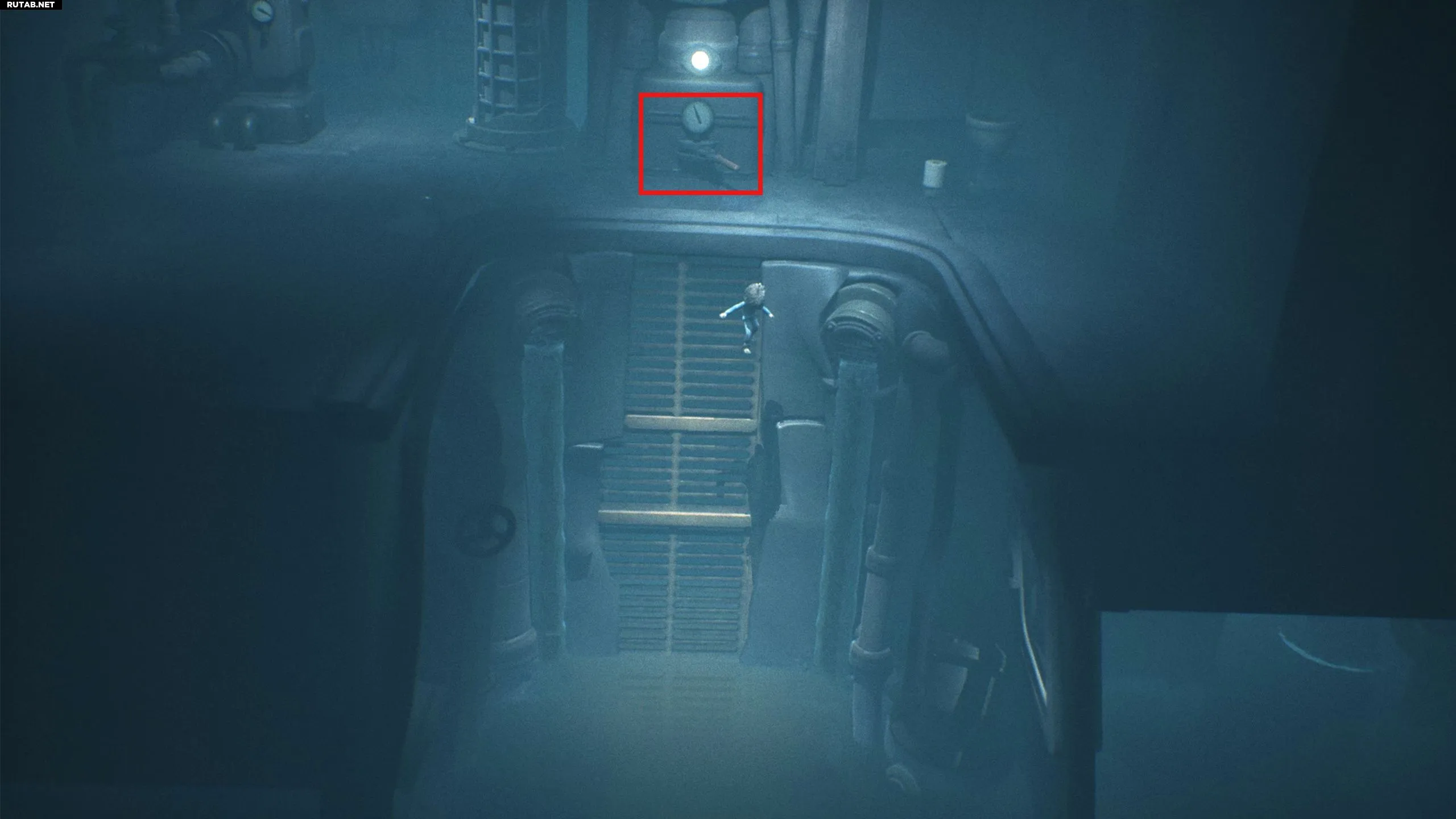 Взберитесь по решёткам и потяните рычаг с левой стороны, чтобы активировать механизм уровня воды.