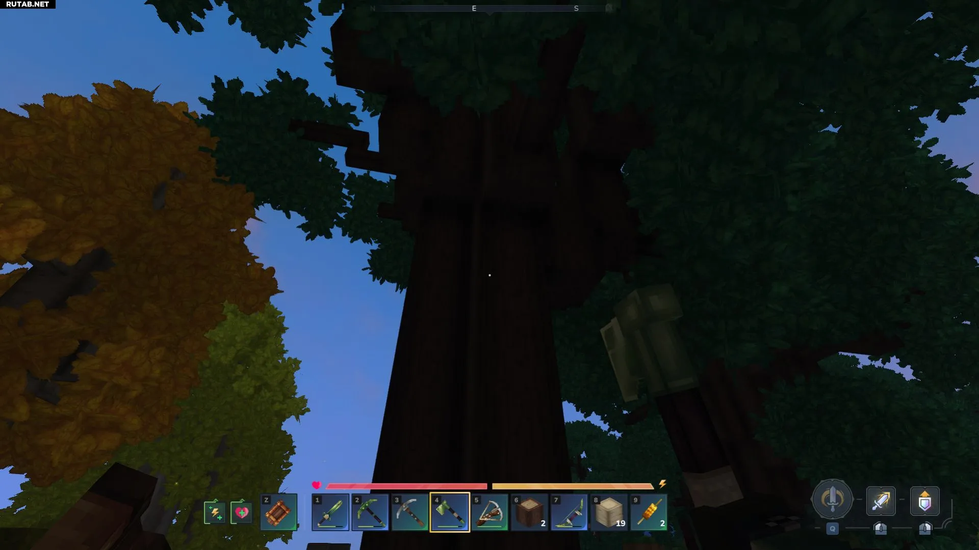 Первый шаг — найти дуб или ясень. Чтобы получить бревна ясеня, ищите деревья с толстыми красновато-коричневыми стволами и темно-зеленой листвой. У дубов стволы цвета темного шоколада, а листья желто-оранжевые. Срубив их, вы получите дубовые или ясеневые бревна.