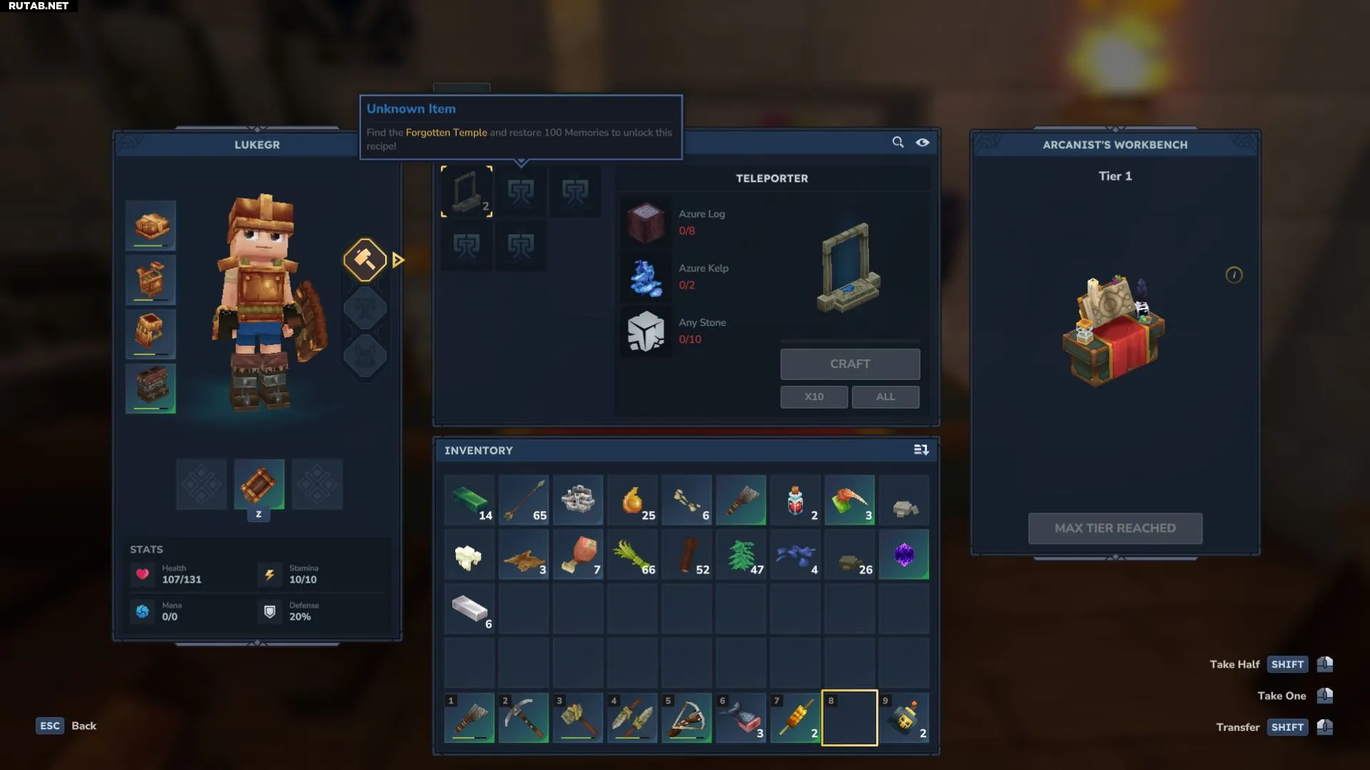 Первый шаг к разблокировке магии — найти Забытый Храм и получить «Воспоминания». Это особый тип коллекционных предметов, который также открывает доступ к важной части магической системы — Порталам. После выполнения этого «квеста» необходимо создать Верстак арканиста. Для этого понадобится особый материал — Торий.