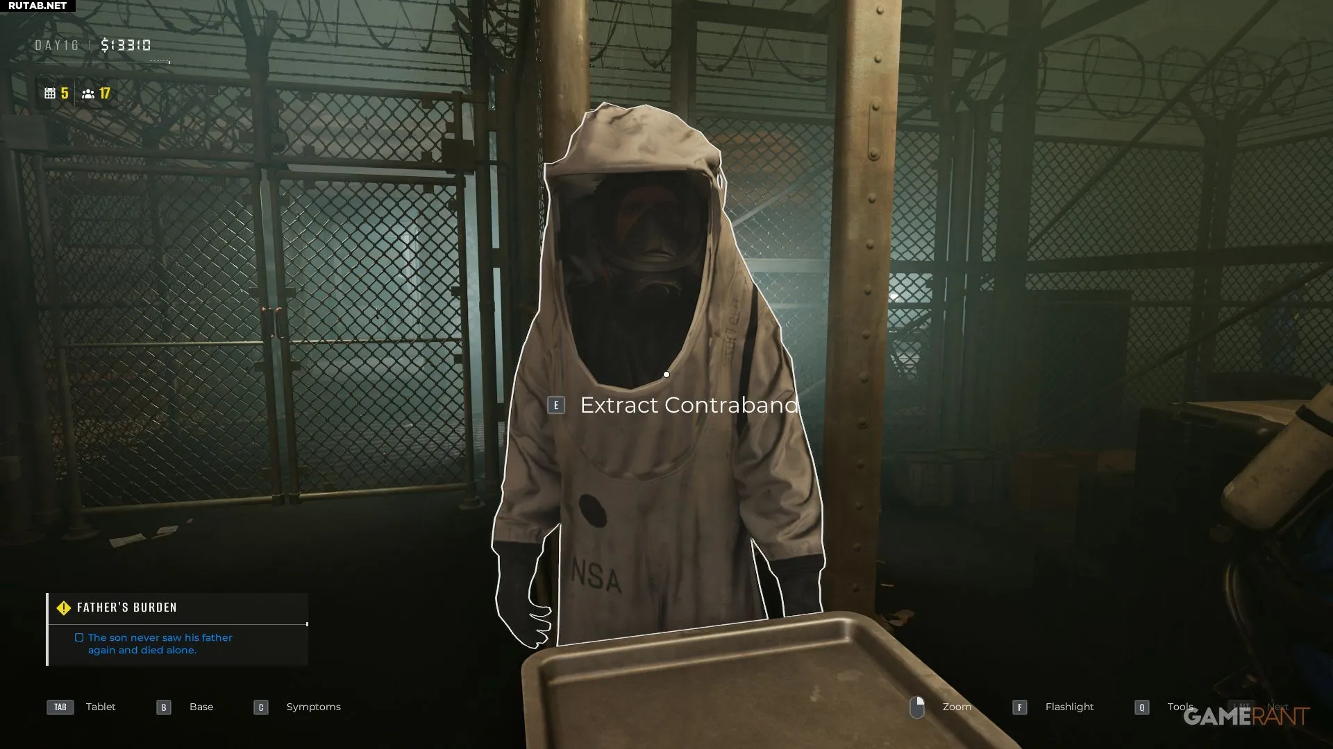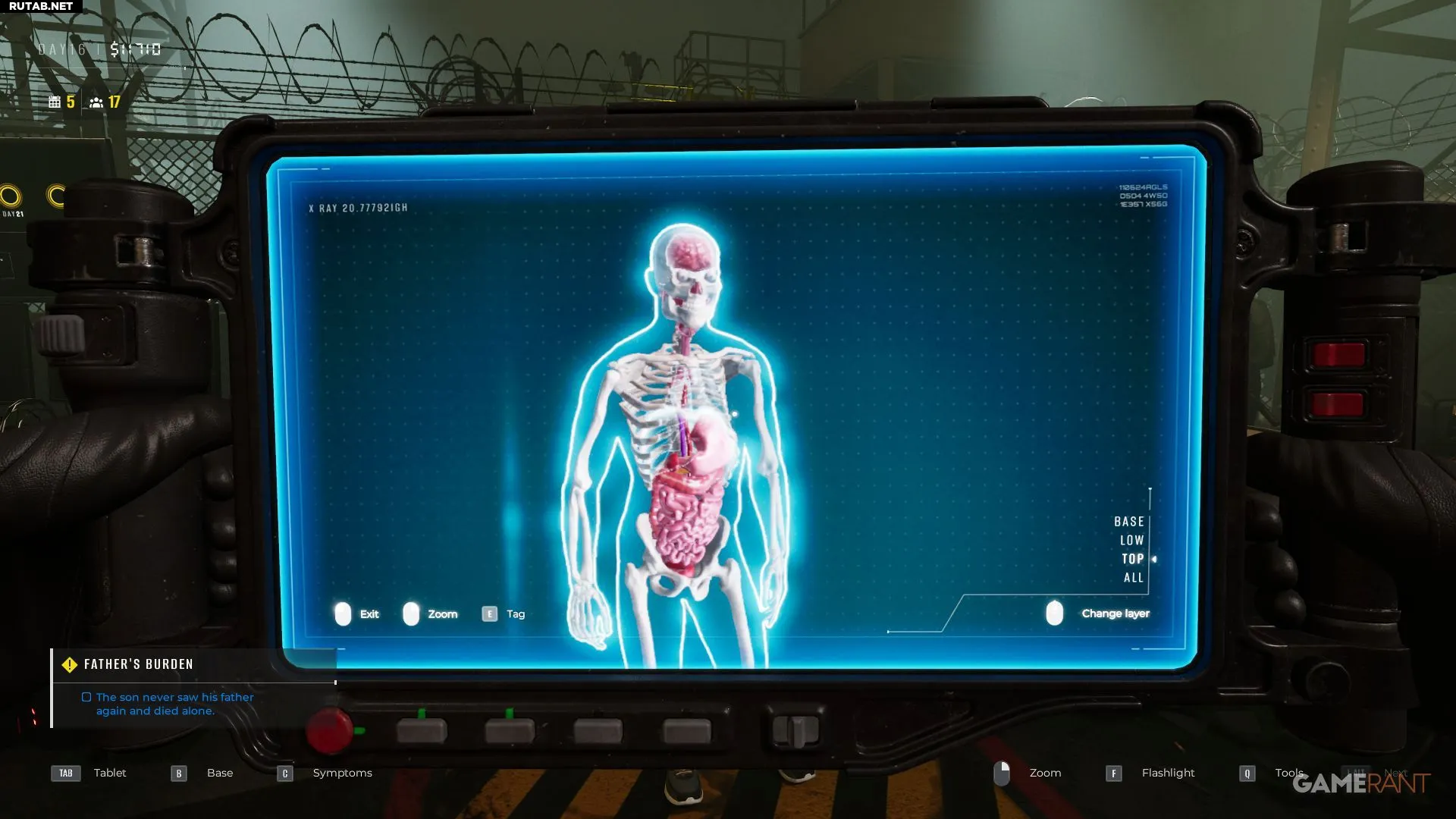 Через несколько дней после разблокировки рентгена игроку сообщат, что выжившие начали прятать контрабанду внутри своих тел. Её можно обнаружить на рентгене в режиме «All», где органы не видны. Увидев инородный предмет, отметьте его, нажав E/X/Square во время сканирования. Он подсветится оранжевым.