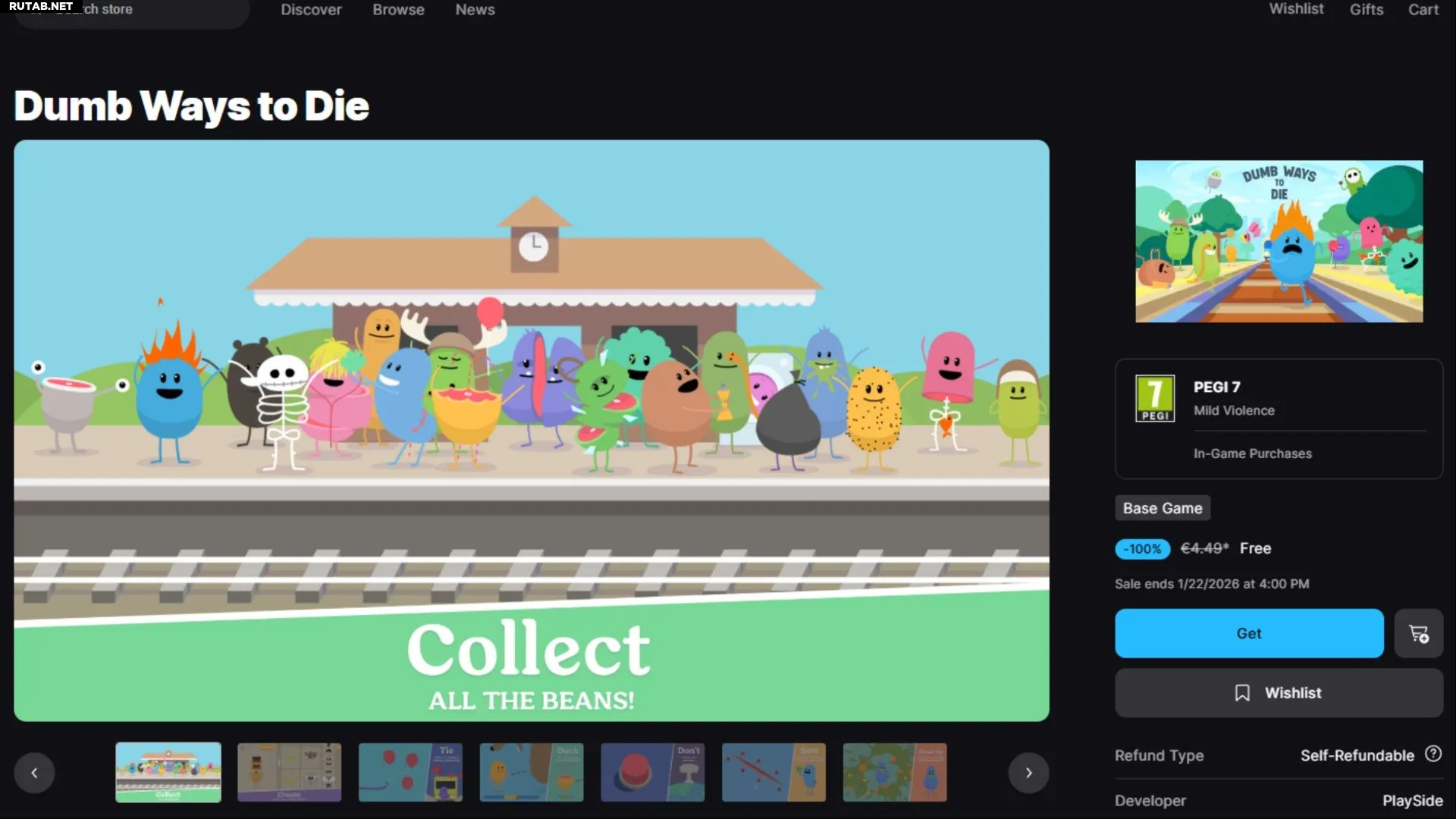 - Приобрести игру Dumb Ways to Die в мобильном магазине Epic Games.