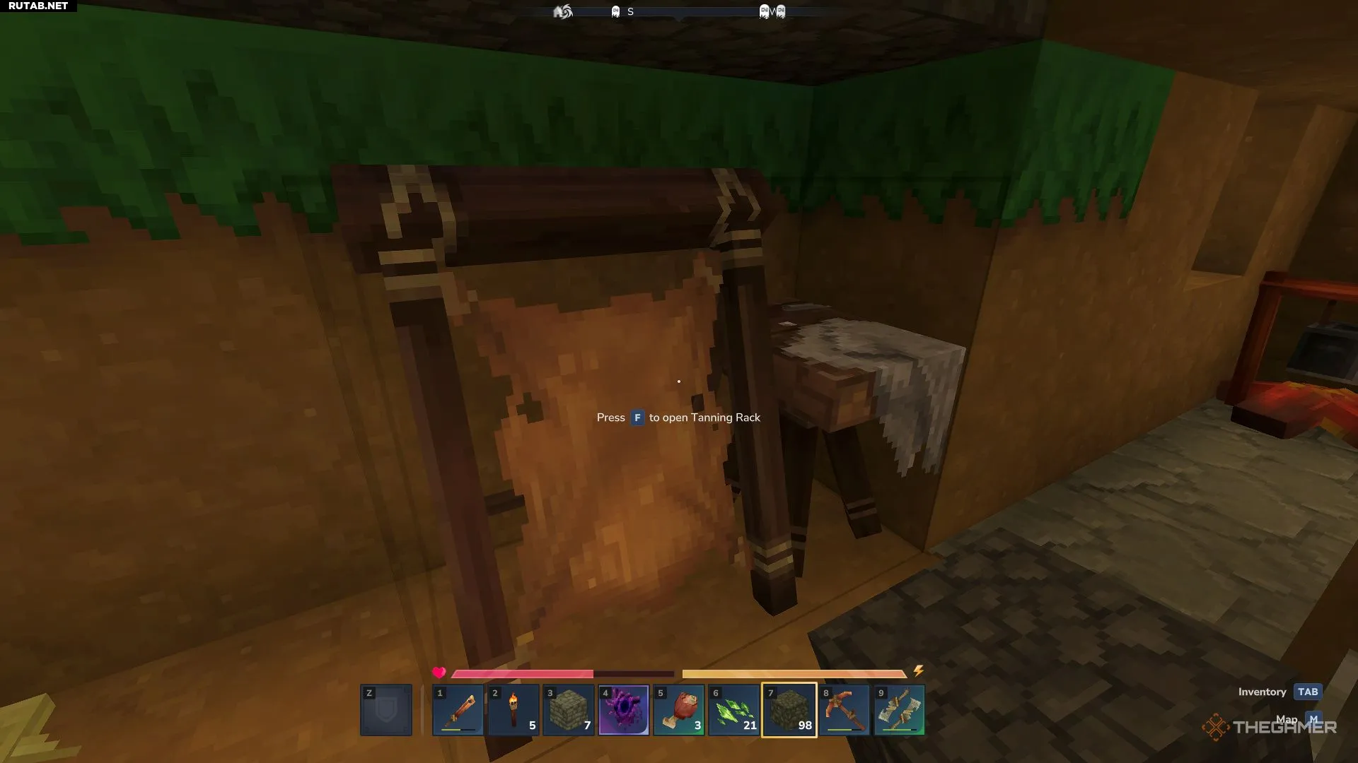 Взаимодействуйте с дубильной стойкой и поместите шкуры внутрь.