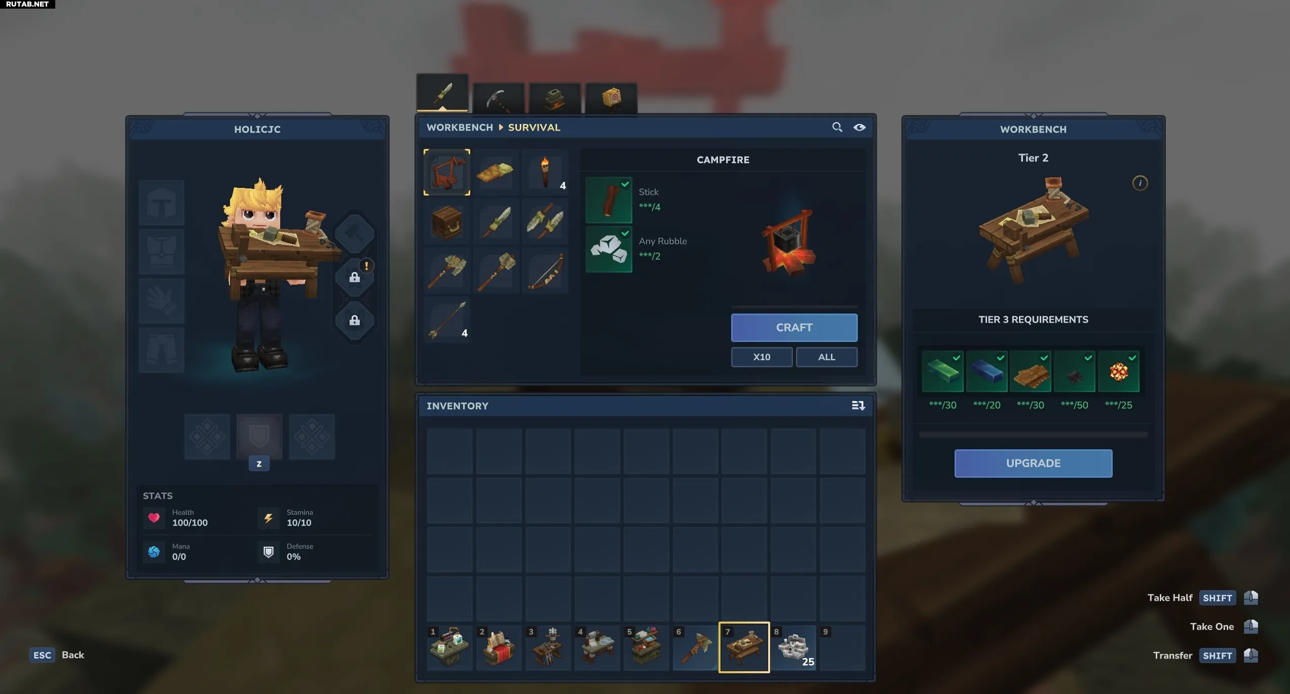 Как улучшить рюкзак в Hytale