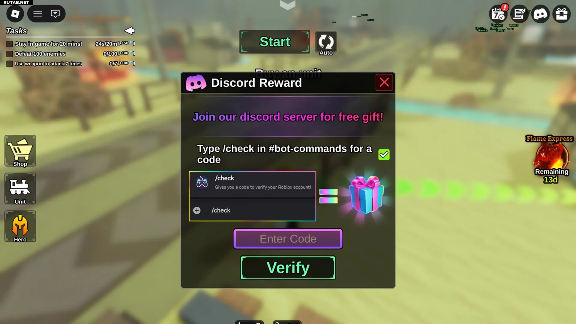 - Вставьте этот код в текстовое поле внутри игры и нажмите Verify (Подтвердить).
