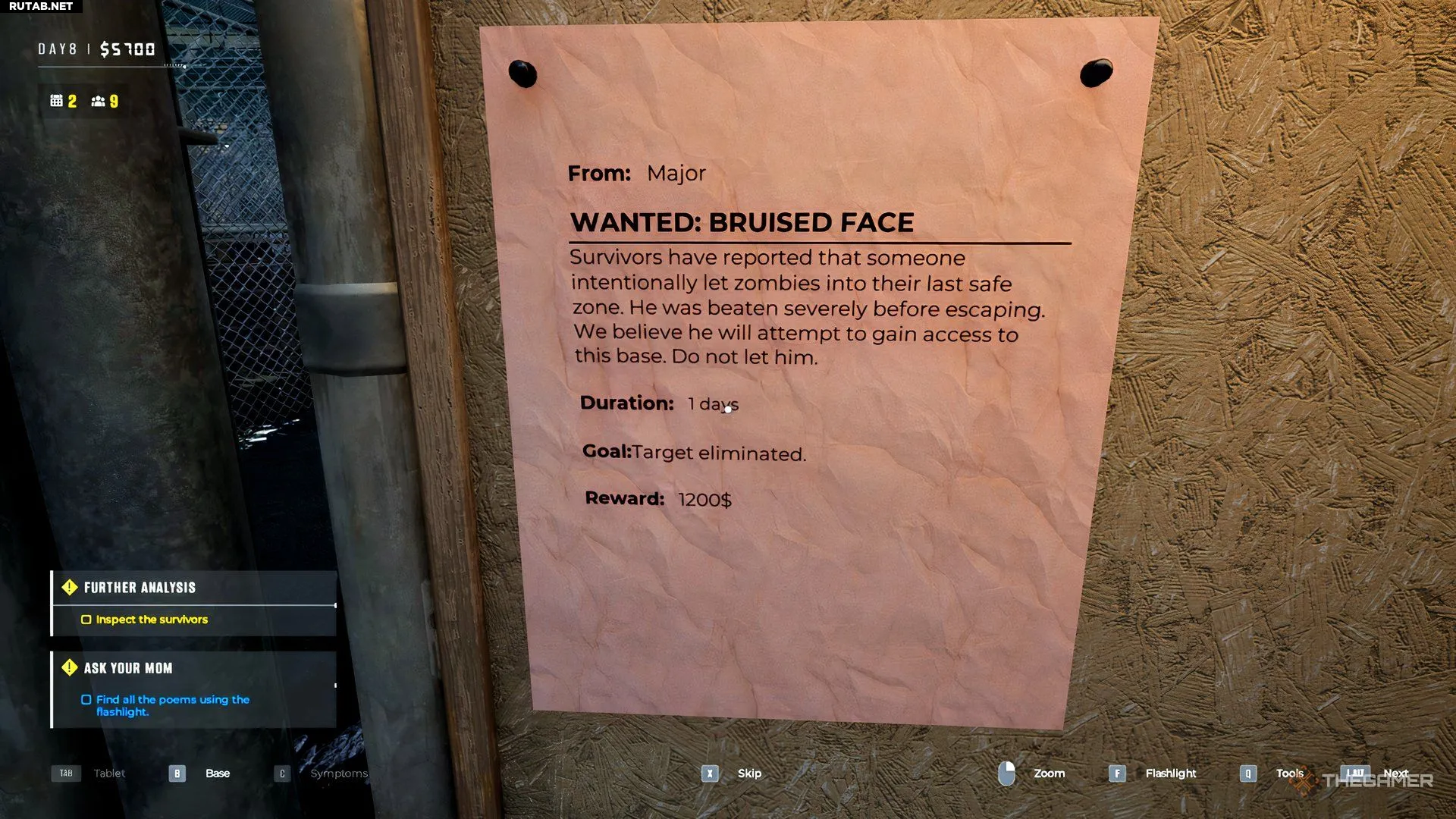 Несмотря на отсутствие других признаков заражения, приказ — ликвидировать. Отправьте его в «Ликвидацию» или убейте самостоятельно огнестрельным оружием или молотком, чтобы завершить задание и получить 1200$.